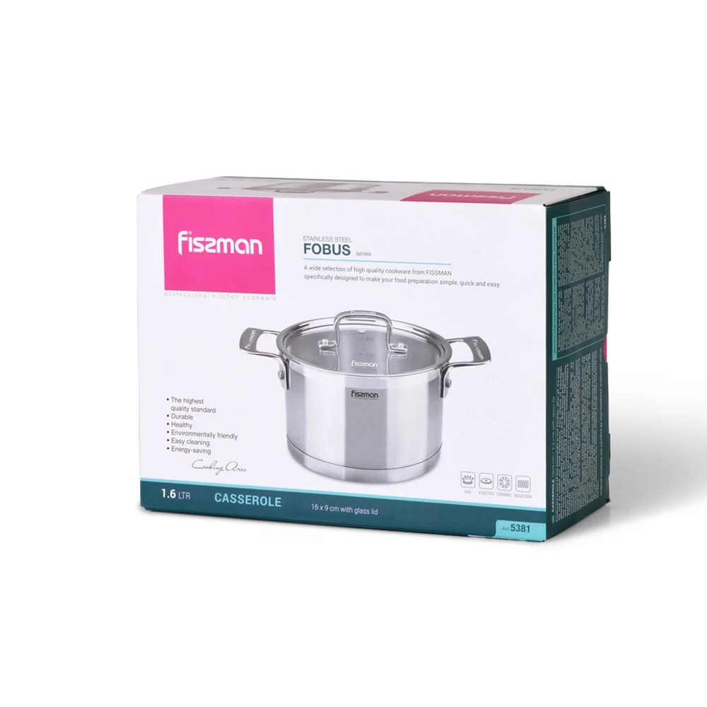 Компания FISSMAN ценит своих покупателей и относится к качеству своей продукции с особым вниманием. Посуда серии FOBUS сделана из самой безопасной высококачественной нержавеющей стали марки 18/10 (INOX304), она обладает жаростойкостью и коррозийной прочностью и очень легка в уходе. Многослойное капсульное дно обеспечивает равномерный нагрев и распределение тепла благодаря алюминиевой сердцевине, раскрывая вкусовые качества блюда и сохраняя все полезные свойства продуктов, а индукционный слой делает посуду универсальной для всех типов плит. • Стальной корпус 18/10 (INOX304) (высококачественная нержавеющая сталь) • Многослойное индукционное дно (для всех типов плит, высокая теплопроводность) • Мерная шкала (для контроля количества жидкости) • Прозрачная ударопрочная стеклянная крышка с паровыпуском позволяет наблюдать за готовностью пищи, не открывая посуду, тем самым, исключая попадания брызг на кожу и одежду • Прочные и удобные для захвата литые стальные ручки на заклепках • Cтильный оригинальный дизайн • Одобрено профессионалами • Безопасно для здоровья и окружающей средыВыбирая фирменную стальную посуду FOBUS FISSMAN, Вы можете быть уверены в лучшем стандарте качества и удобстве использования, а стильный оригинальный дизайн расставит акценты и станет украшением на любой кухне.