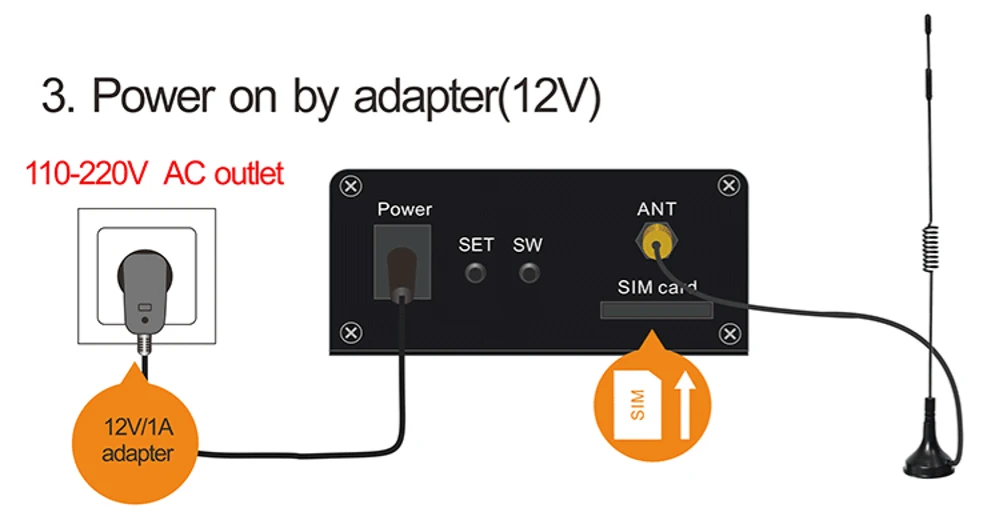 ПараметрыИсточник питания постоянного тока: Стандартный адаптер 12В/500мА или 1А, диапазон от 9 до 12 В.Интерфейс sim-карты: поддержка микро sim-карты 3 вВнешняя антенна: SMA Антенный интерфейс, 50 ом, Ga в 6 дБРелейные выходы: 1 канал, 10A/30VDC, 10A/250VACЛогика вывода: нормальное открытие и нормальное закрытие.