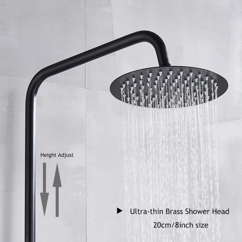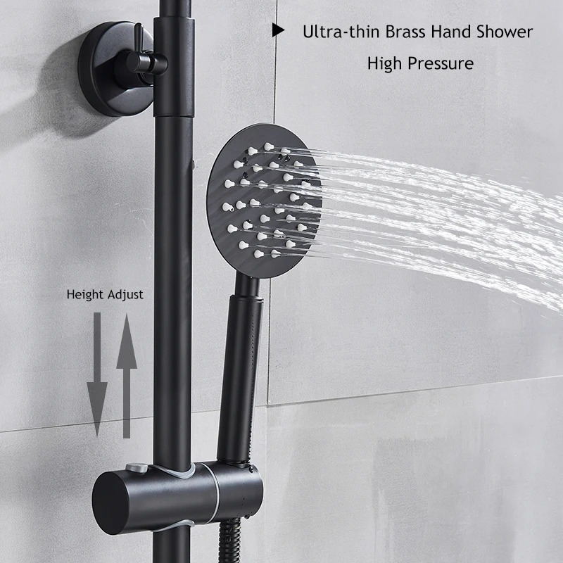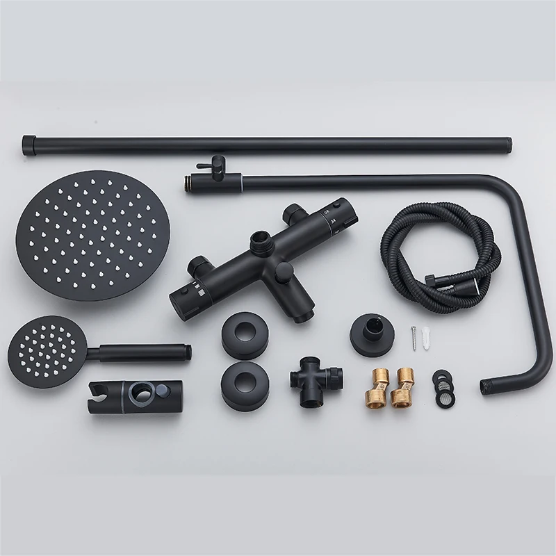 Матовый черный термостатический душевой кран для ванной комнаты, ультратонкая насадка для душа, кронштейн для ванны, носик, смеситель, набор для душа