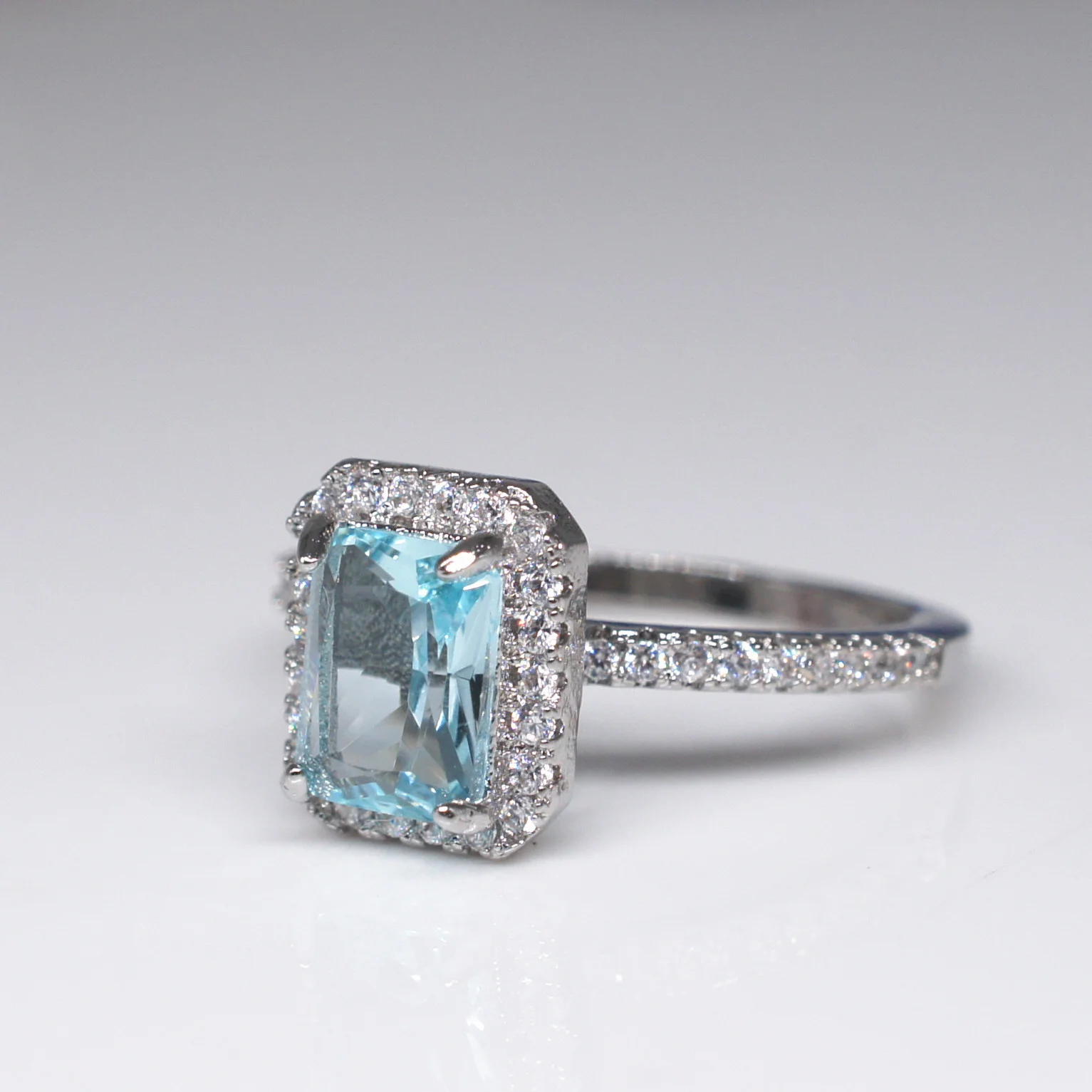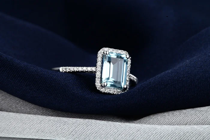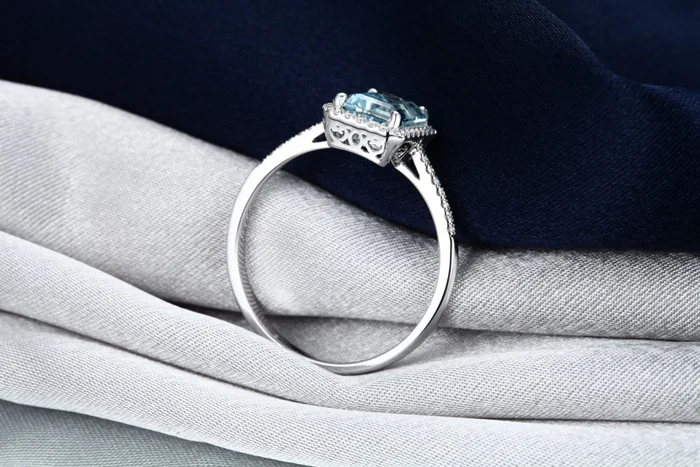 Кольцо Bague Ringen, классический дизайн, серебро 925 пробы, изящное ювелирное изделие, квадратный синий топаз, аквамарин, Женское Обручальное Кольцо Size5-9, оптовая продажа