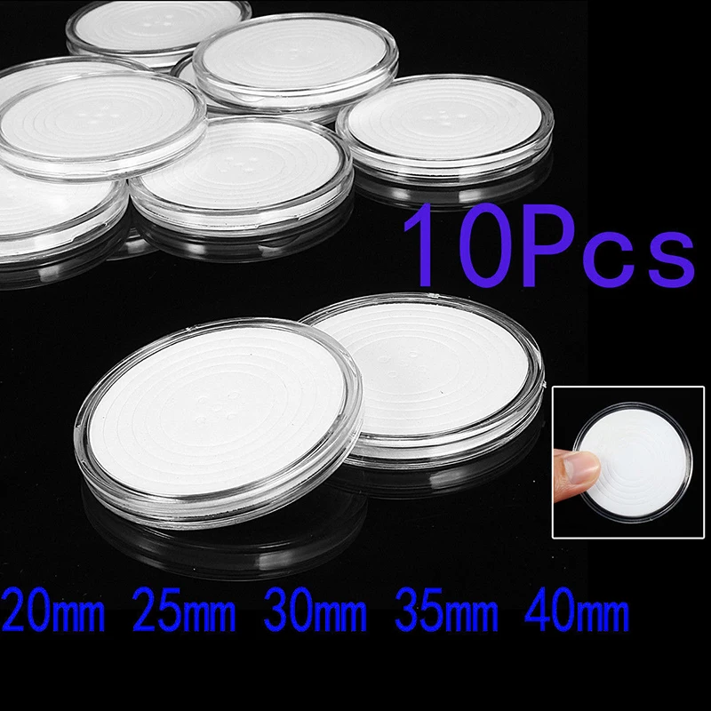 * 10X прозрачный круглый пластиковый контейнер для монет, контейнер для хранения, держатель, чехол 20 ~ 40 мм