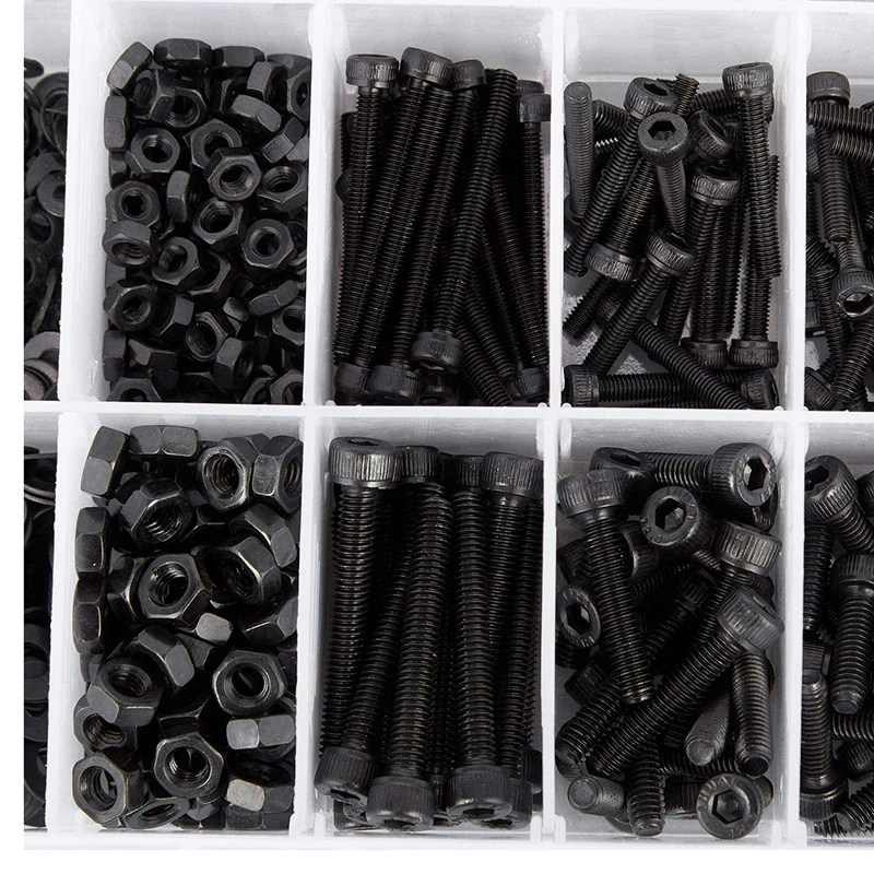 4. Различный размер M3 M4 M5 винты и гайки всего 1080 шт., наиболее часто используемые Нержавеющая сталь или 12,9 Gade легированная сталь Шестигранная Кепки болтов винтов гаек.