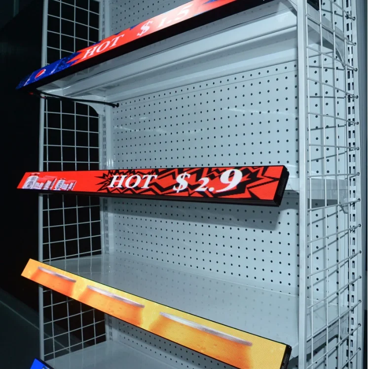 P2 полка светодиодный экран дисплея для стеллажа супермаркета цена светодиодный тикер программируемый текстовое сообщение светодиодный движущийся знак