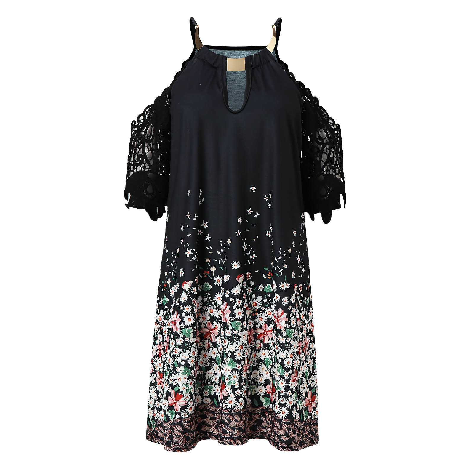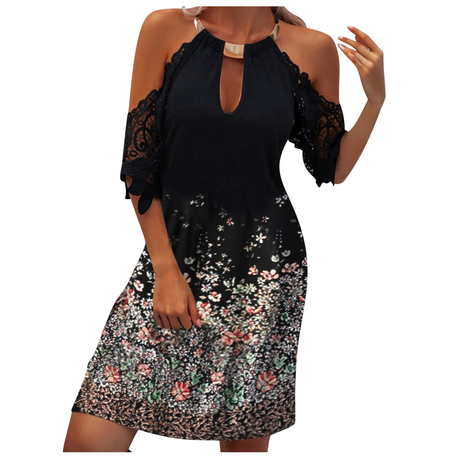 【Features】глубокий вырез, выше колена, подкладка без, тонкая талия, повседневная, сексуальная, цветочный принт, бохо, платье с оборками