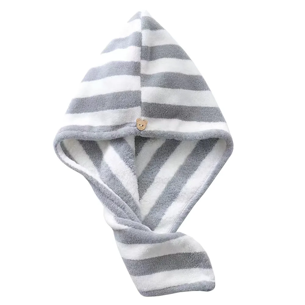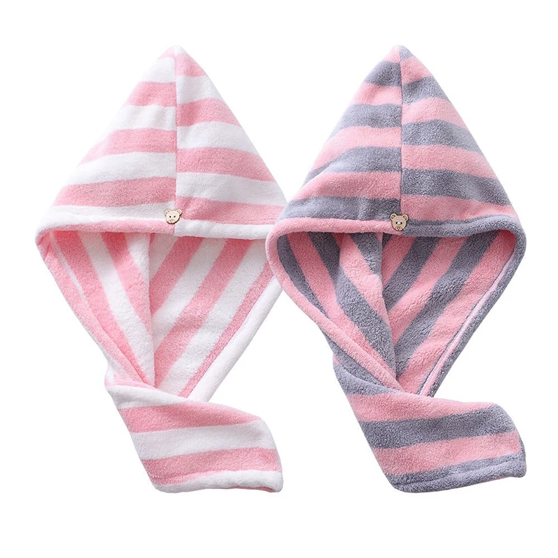 Полосатая сухая шапка для волос, материал кораллового бархата, мягкая и удобная, может впитывать воду, не легко линять волосы. Есть для ношения двумя способами,