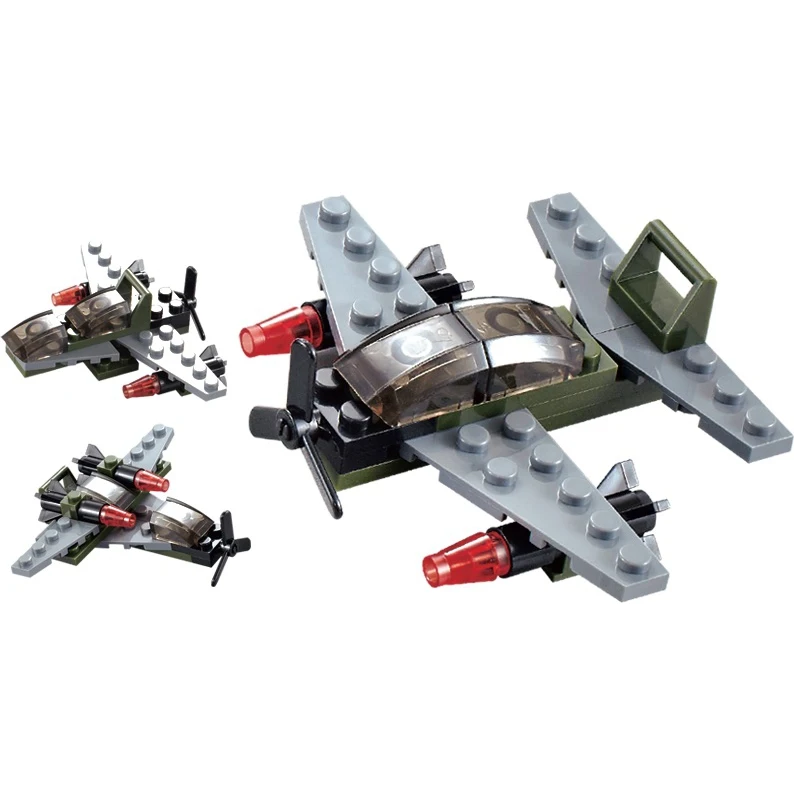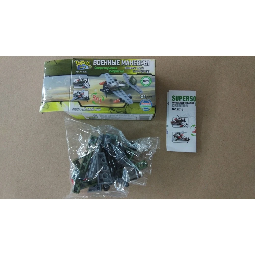 Конструктор SuperBlock "Военные маневры. Самолет классический XS". Конструктор 3 в 1 cобирается в боевые самолеты. Детали изготовлены из высококачественной пластмассы, надежно скрепляются между собой и не разваливаются сами по себе, но при необходимости разбираются без особого труда. Конструктор имеет 21 деталь, имеет четкую и понятную инструкцию в картинках. Детали конструктора совместимы с конструкторами других марок. Размер изделия: 10x10x3 см.