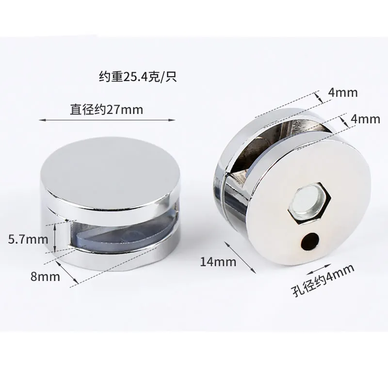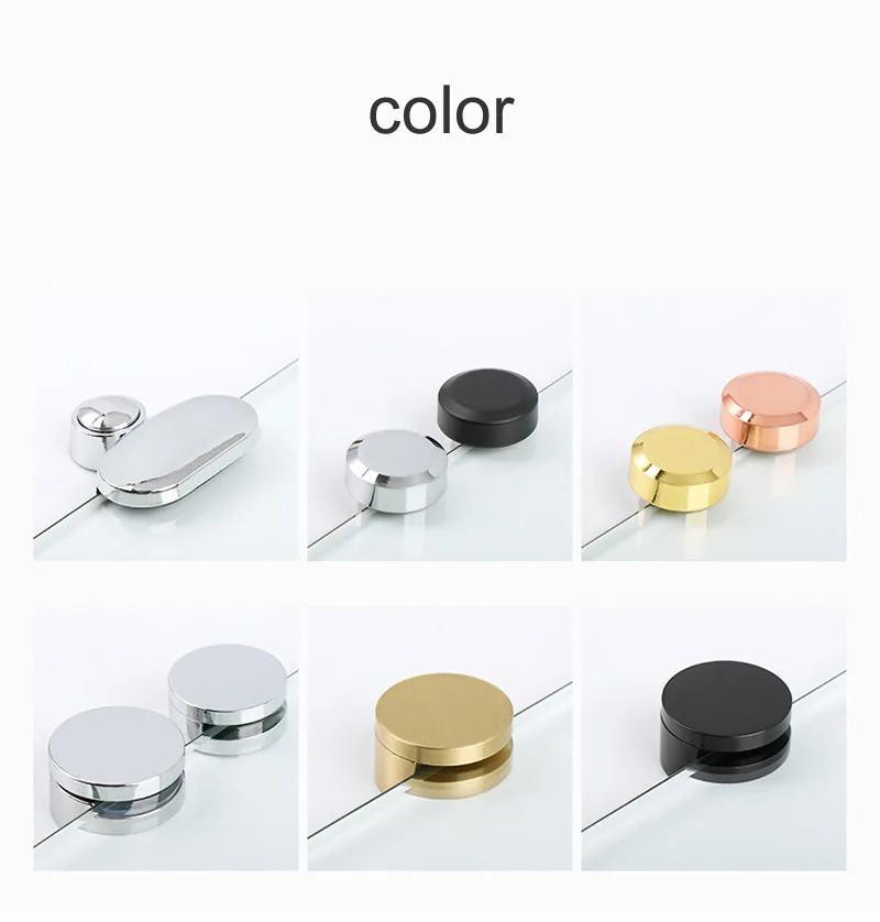 For glass Thickness:3mm- 5mm Scope: all kinds of glass / wooden partition fixedGlass or wood can be installed perpendicular to the ground,It may also be installed in parallel.For fixed connection of various glass case. Package : 2pcs / lot Display----------------------Shopping Guide