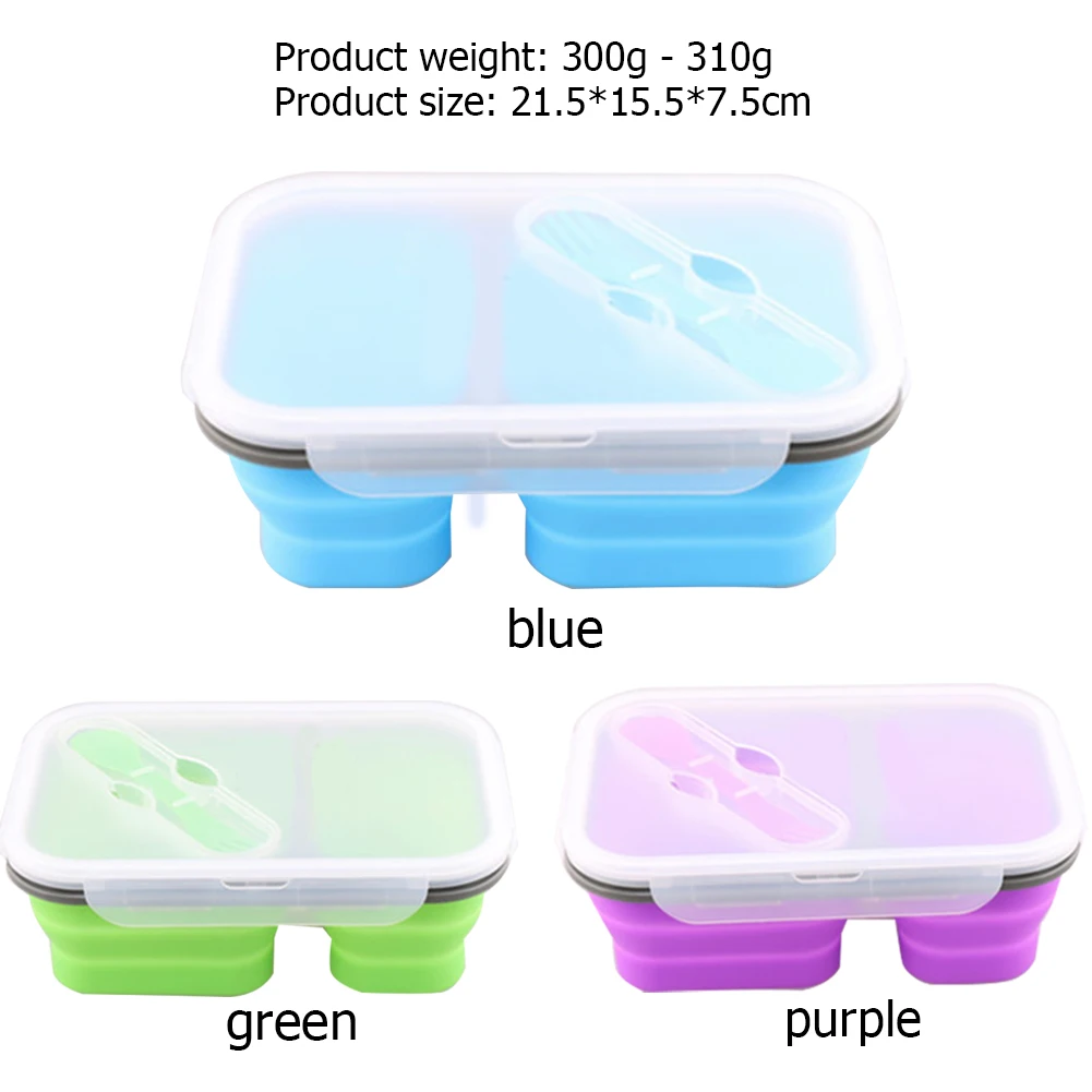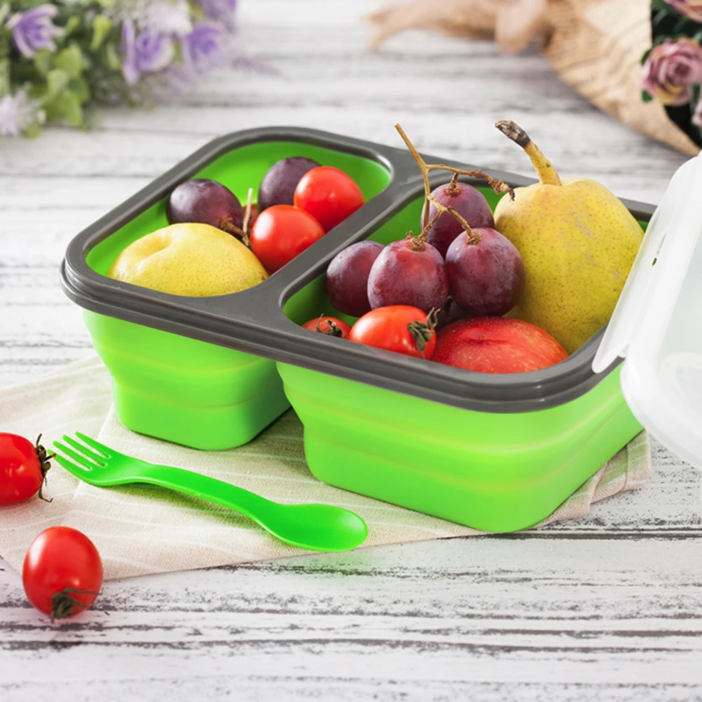 2 отсека 1100 мл Силиконовый складной переносной Ланч-бокс микроволновая миска для духовки складной контейнер для хранения еды Ланч-бокс