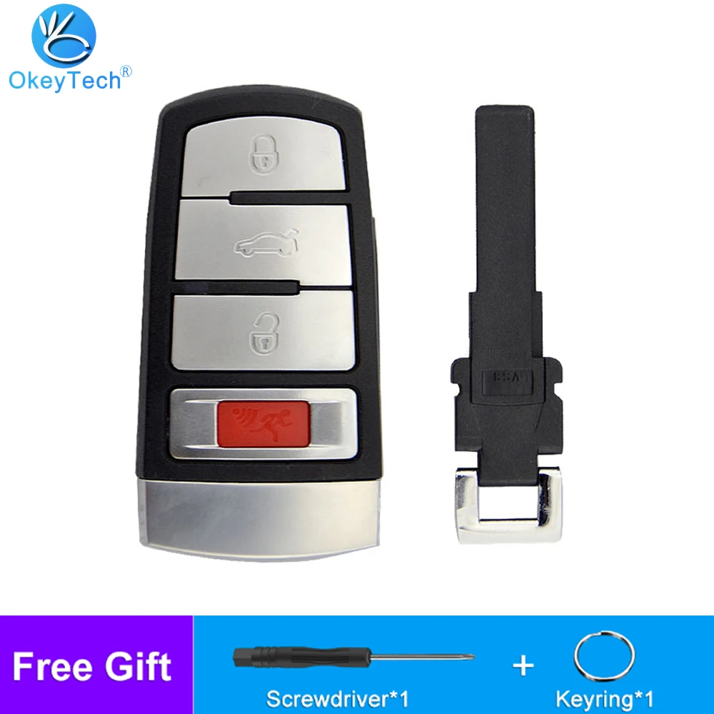 OkeyTech 4 кнопки Smart Remote чехол для ключа Fob для Volkswagen CC Passat Magotan с аварийной вставкой