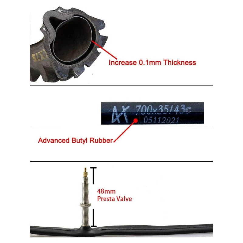 Замена шины: велосипедная трубка изготовлена из высококачественного бутилового каучука. Он отличается улучшенной производительностью герметизации, устойчивостью к озону, анти-старению, амортизацией и электрической изоляцией.