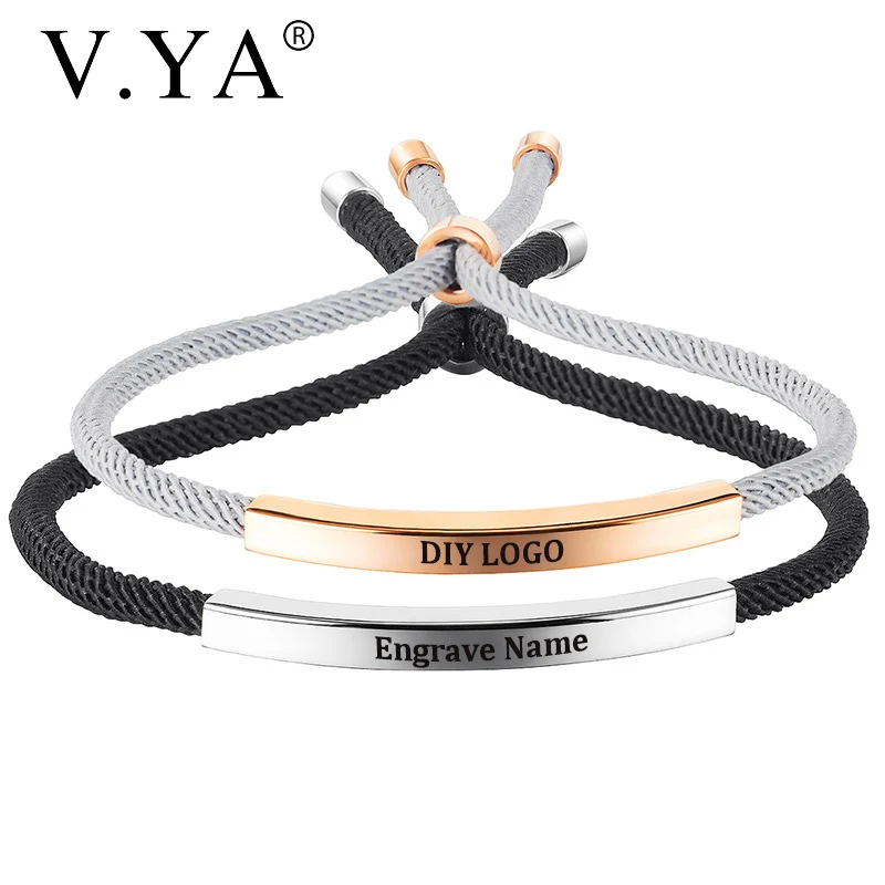 V.YA гравировка имени пара браслетов ручной работы сделай сам логотип браслет из нержавеющей стали для влюбленных женщин MenJewelry Прямая поставка