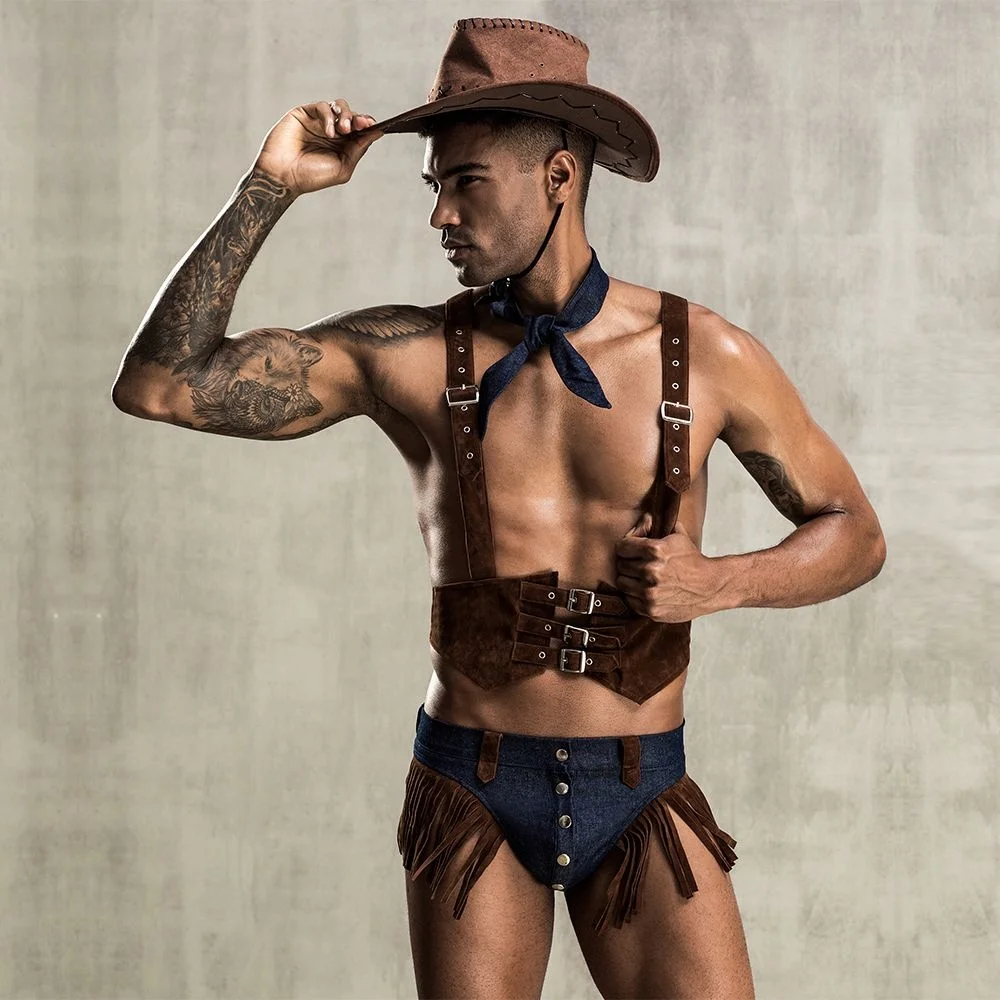 Сексуальное эротическое Ковбойское нижнее белье, жилет, униформа в западном стиле, костюм для косплея, горячая распродажа, сексуальное ночное белье, ролевые костюмы для мужчин