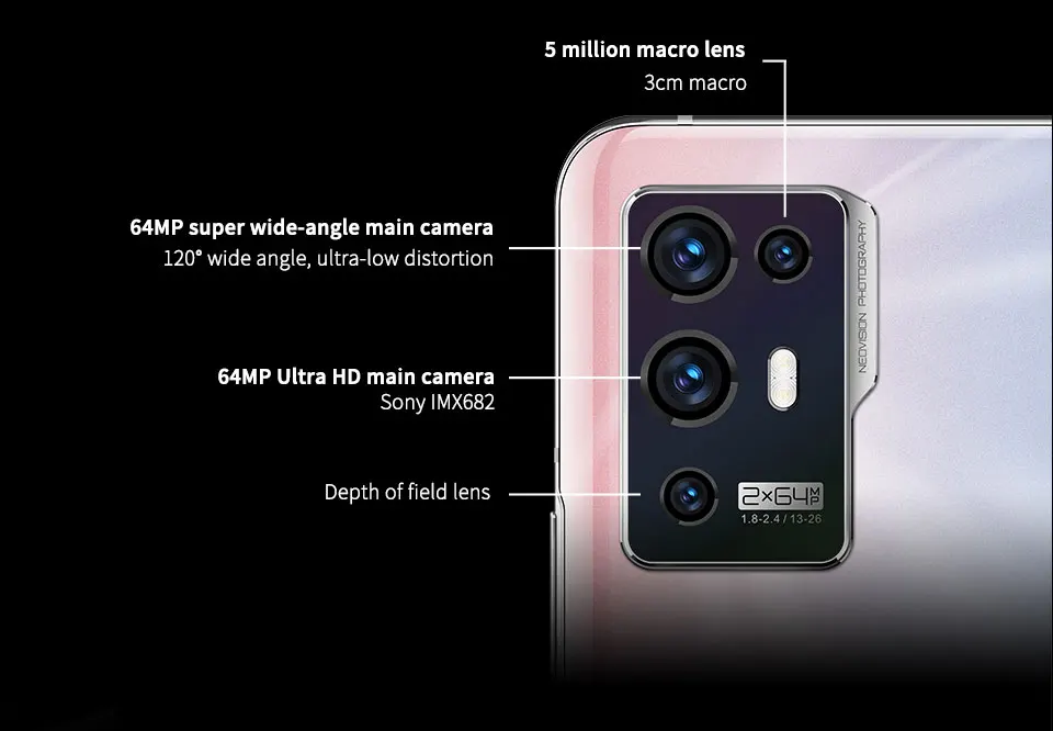 Двойная Основная камера 64 мп/UFS3.1 + LPDDR5