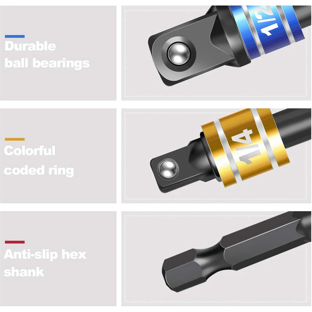 Описание Этот комплект удлинителя гнезда удара из 3 предметов предназначен для удовлетворения различных потребностей. Плотно и надежно помещается в сверлильный патрон или ручной драйвер. Отлично подходит для самостоятельного ремонта, домашнего обслуживания и большинства общих ремонтов, а не для промышленной работы. Отличное дополнение к любому набору инструментов. Особенности -Цвет: желтый, красный, синий. -Материал: Высокоуглеродистая сталь. -Размеры 1/4 ": 65 мм/2,56 дюйма, 1/4" для конических фрез может быть преобразуется в 6,35 мм с квадратным носком. -Размеры 3/8 ": 65,8 мм/2,59 дюймов, 1/4" для конических фрез может быть преобразуется в 9,4 мм с квадратным носком. -Размеры 1/2 ": 68 мм/2,68 дюймов, 1/4" для конических фрез может быть преобразуется в 12,6 мм с квадратным носком. -Адаптер ударного гнезда изготовлен из высокоуглеродистой стали, избегайте поломки во время использования -Этот набор адаптеров для ударных розеток предназначен для обеспечения надежного крепления к существующему инструменту. Обеспечивает дополнительную длину, чтобы достичь множества труднодоступных пространств -Многофункциональные ударные адаптеры используются для установки пневматической отвертки, электрической отвертки, пневматической дрели, ручной отвертки и другой установки для шестиугольного инструмента -Состоит из ваших наиболее распространенных размеров бит 1/4 ", 3/8" и 1/2 "меняющихся размеров хвостовика. Обеспечивает универсальность и удобство независимо от того, какой адаптер ударного гнезда вы выбрали для использования -Различные цветные кодовые кольца на адаптерах гнезда удара, позволяют легко выбрать правильный Упаковочный лист 1*1/4 "шестигранный хвостовик к 1/4" гнездо адаптера 1*1/4 "шестигранный хвостовик до 3/8" гнездо адаптера 1*1/4 "шестигранный хвостовик до 1/2" гнездо адаптера