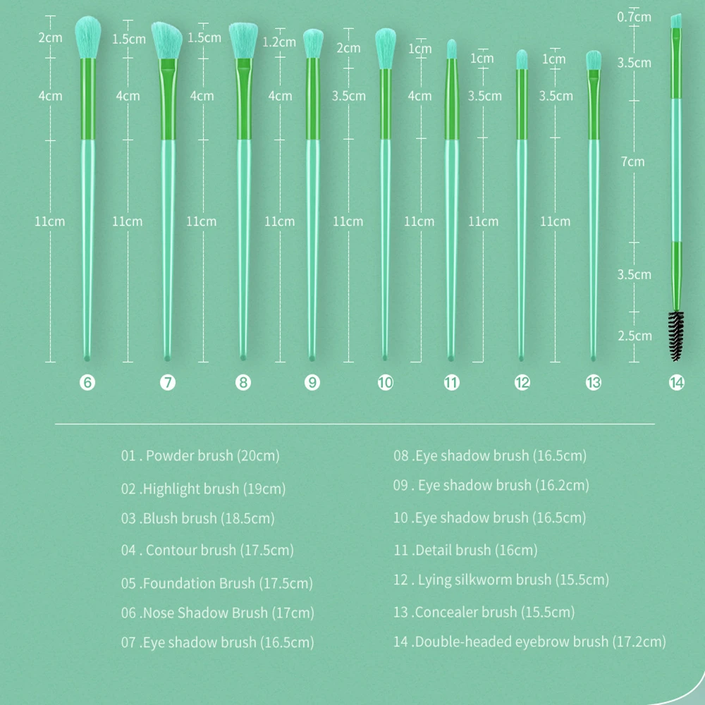 Этот профессиональный набор кистей содержит 14 различных функциональных кистей, почти покрывает все ваши потребности в макияже. Идеально подходит для смешивания, подсветки, затенения и для контуринга лица, макияжа