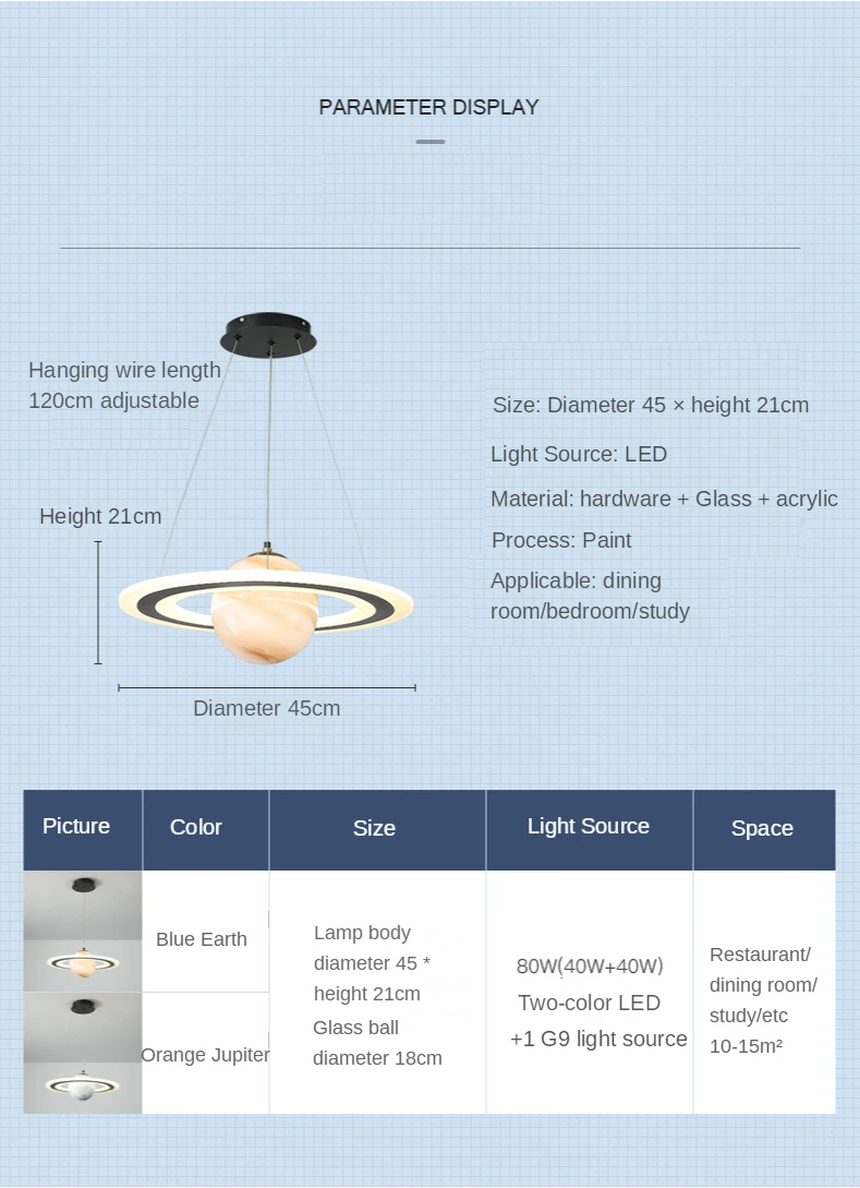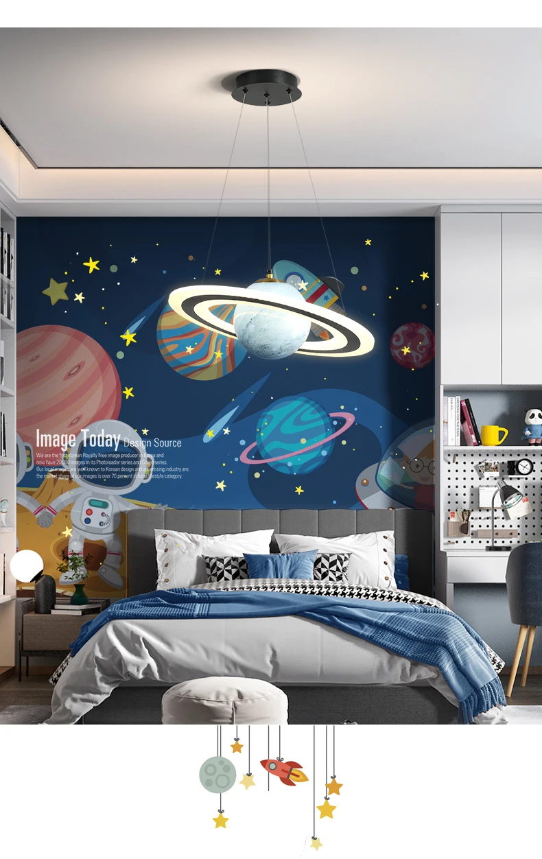 Nordic Design Pendant Lights Planets Led Glass Ball Pendant Lamp Lustre for Children Room Bedroom Restaurant Home Decor Lamparas