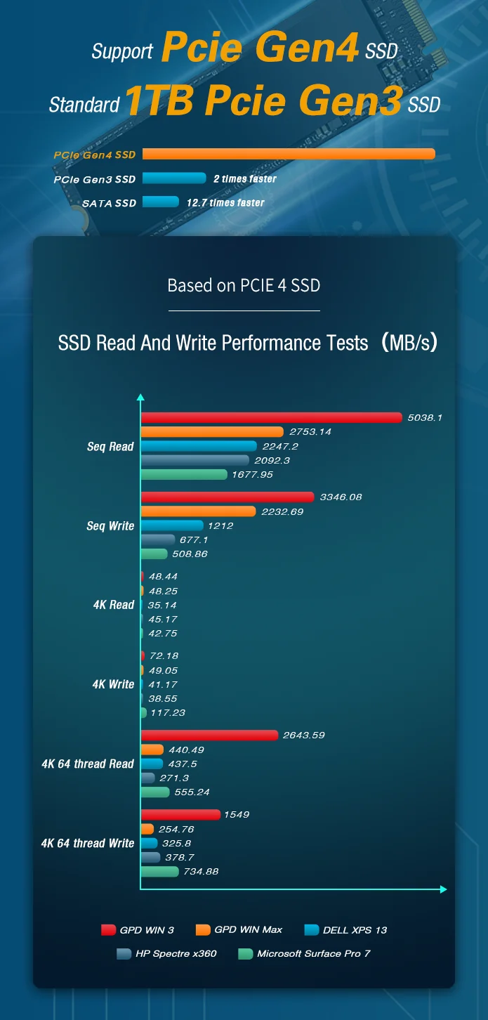 Благодаря технологии шины PCle четвертого поколения скорость чтения и записи SSD M.2 NVMe 2280 может достигать удвоенной производительности