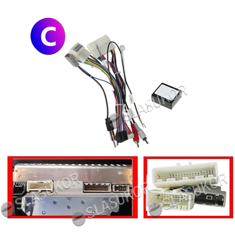 Эта машина имеет три различных кабеля: A, B и C. По умолчанию мы отправляем кабель. Если ваш автомобиль оснащен высококачественной версией, а розетка на задней панели центральной консоли такая же, как показано в B и C, пожалуйста, купите его по ссылке ниже B или C кабель.