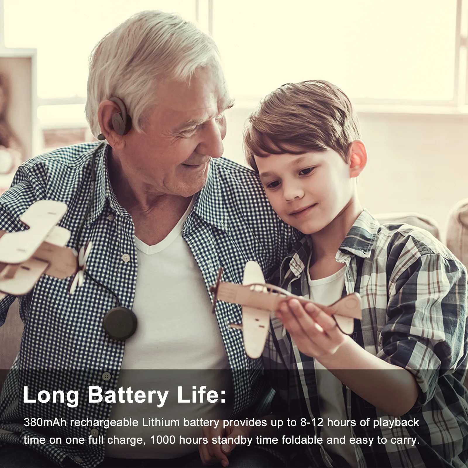 Перезаряжаемая литиевая батарея 380 мАч обеспечивает до 8-12 часов воспроизведения при одной полной зарядке, 1000 часов в режиме ожидания складывается и легко переносится.