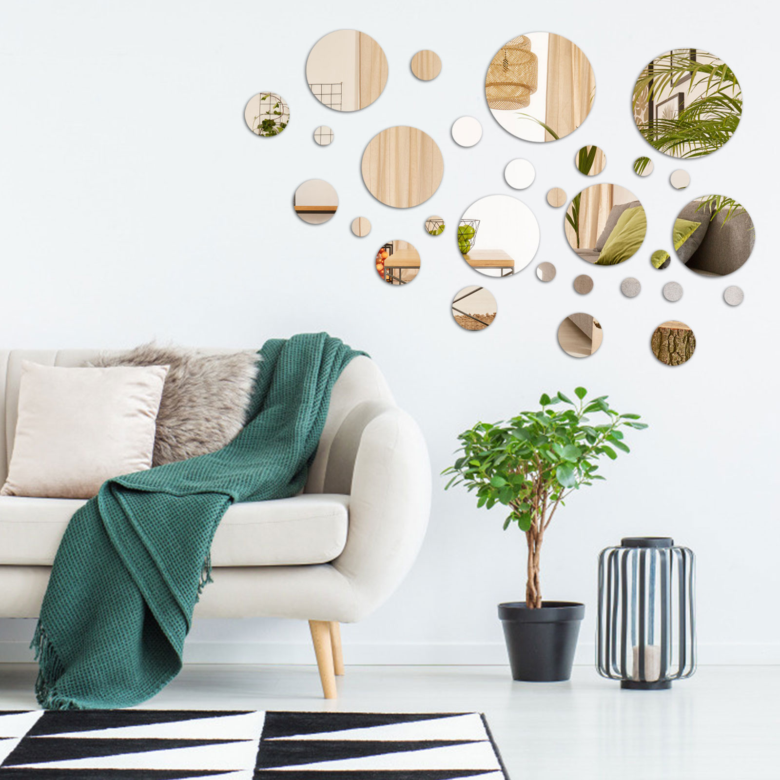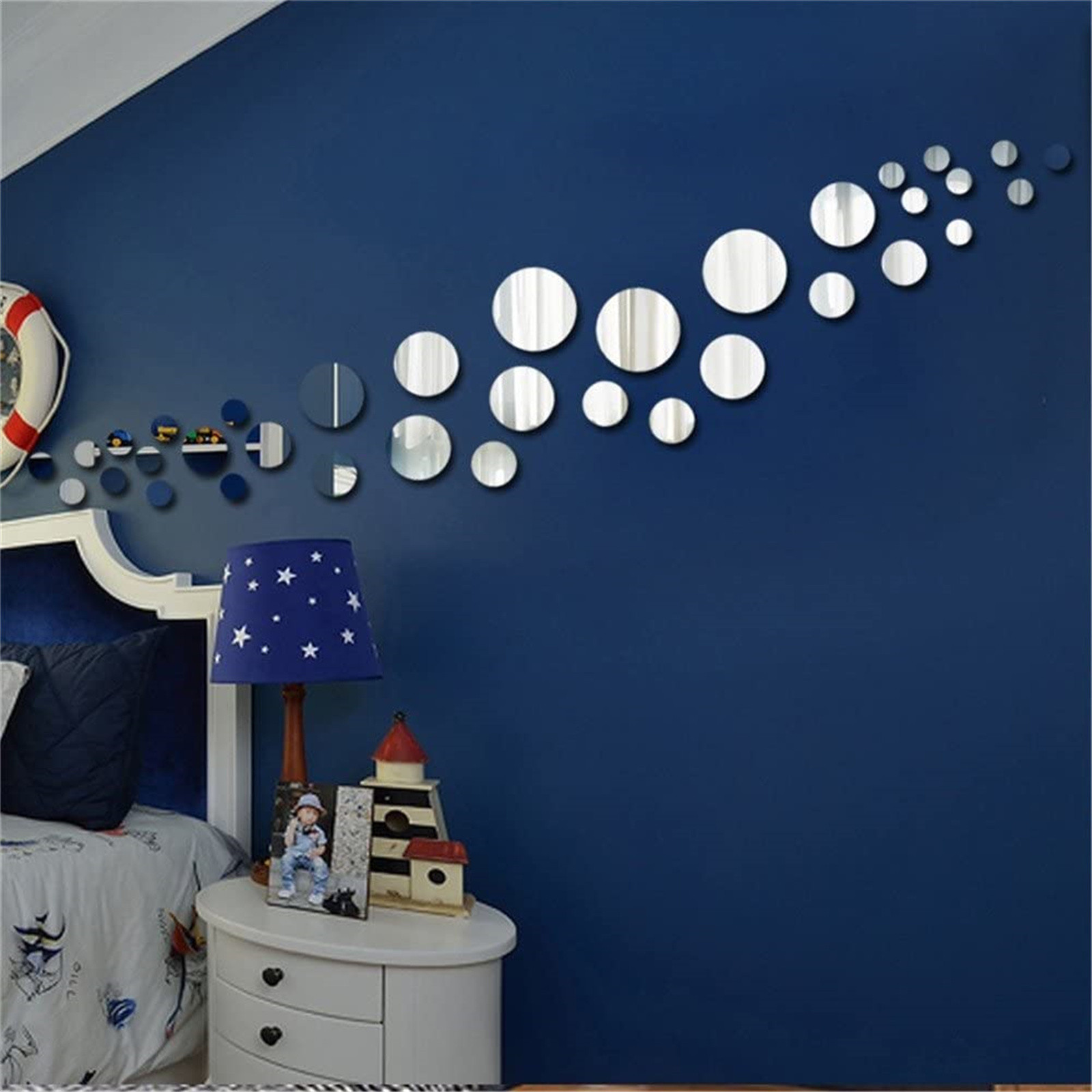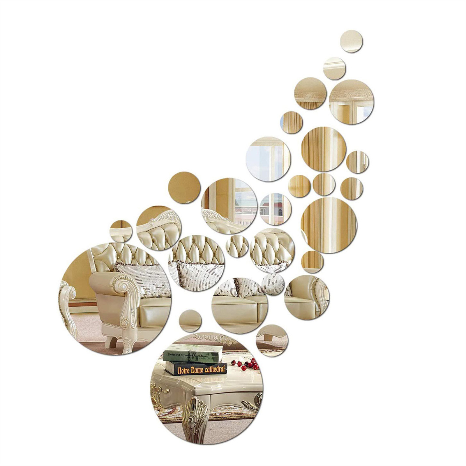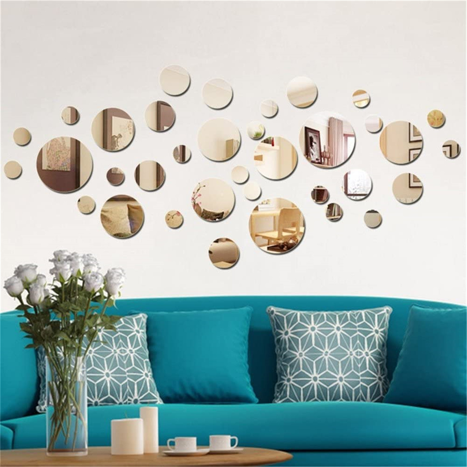 Зеркальные наклейки на стену, цветок, настенная живопись, диван, акриловое украшение для дома, серебро