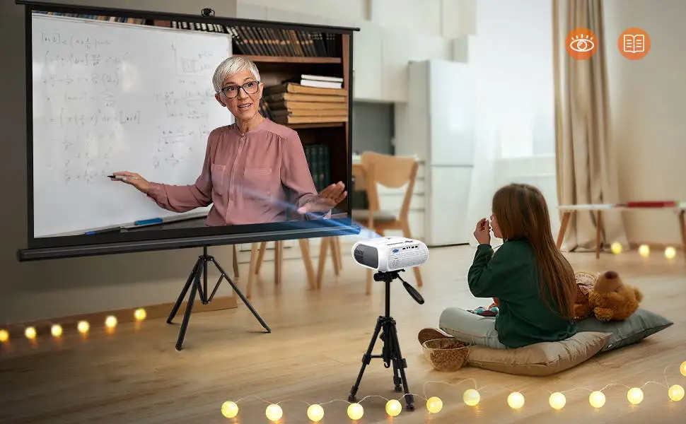 Diffuse reflection imaging to protect your eyesight, an excellent online learning assistant! The large-screen eye-protection light source and built-in 3W stereo speaker let you enjoying the highest-end cinema and realest classroom atmosphere, up to 300 inches giant screen, lose yourself in the complete viewing Experience!