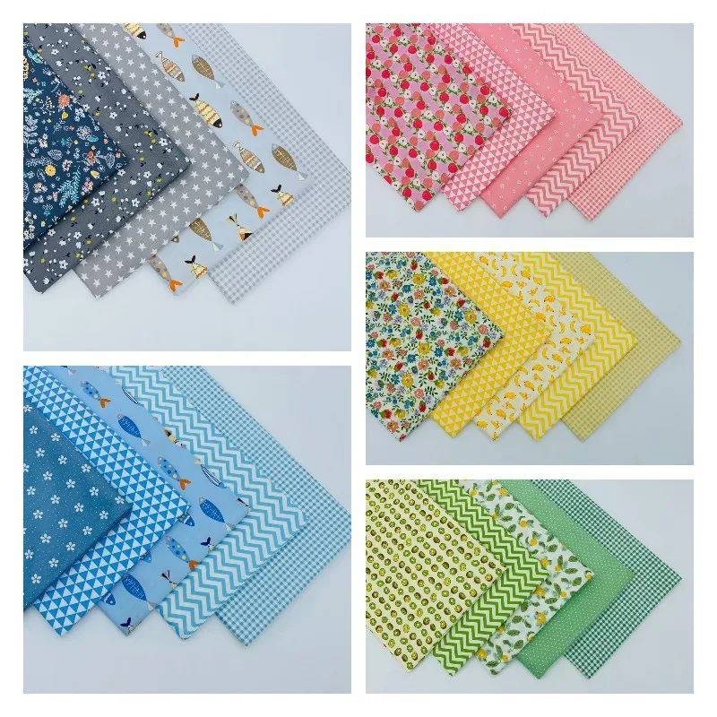 Ткань из чистого хлопка с саржевым принтом, ручная работа в стиле пэчворк, цветочный узор, ручная работа в стиле пэчворк, одежда с принтом, шитье, комплект из 5 предметов