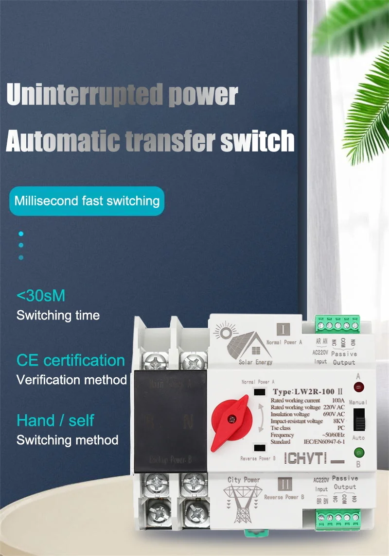 W2R серии двойной мощности автоматический переключатель передачи является недавно разработанный микро бытовой переключатель передачи питания. Выключатель в основном используется для тестирования, Нормальная или запасная мощность или нет. Когда Нормальная мощность является ненормальной, запасная мощность работает сразу, что обеспечивает непрерывность, надежность и безопасность электропитания, продукт специально разработан для домашней установки на орбите и специально используется в din-рейке распределительной коробки.