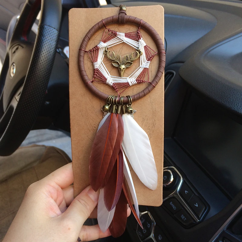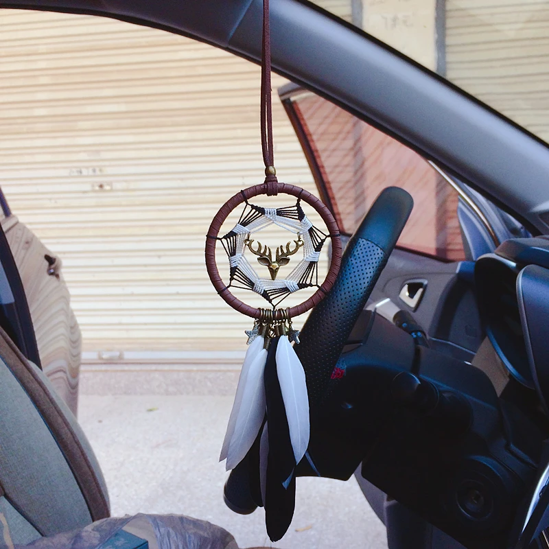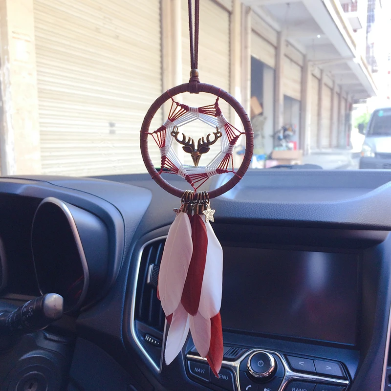 Мини-Ловец снов на окно, автомобильное украшение, зеркало заднего вида, аксессуары, настенный художественный кулон, подарки для дома