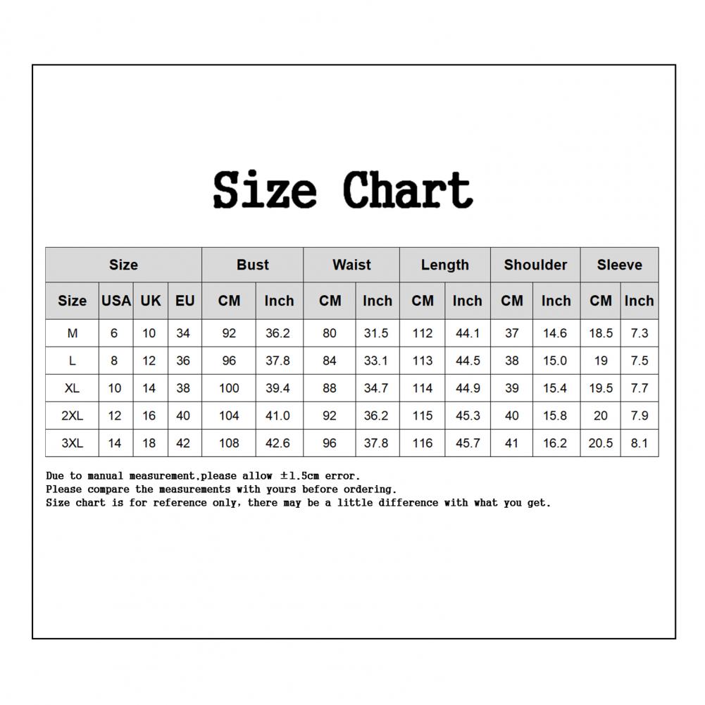 [Our Size 2XL] Bust: 104cm/40.9", Shoulder: 40cm/15.7", Sleeve: 20cm/7.9", Waist: 92cm/36.2", Length: 115cm/45.3" (Approx.)