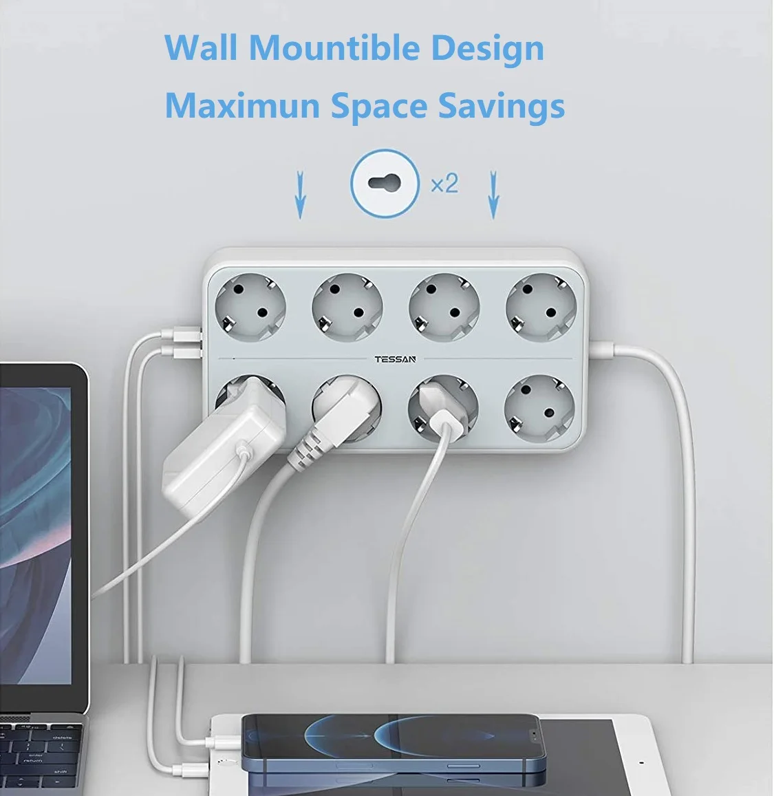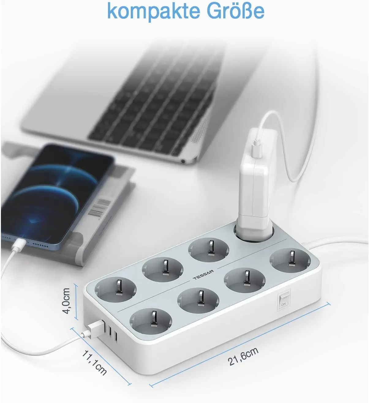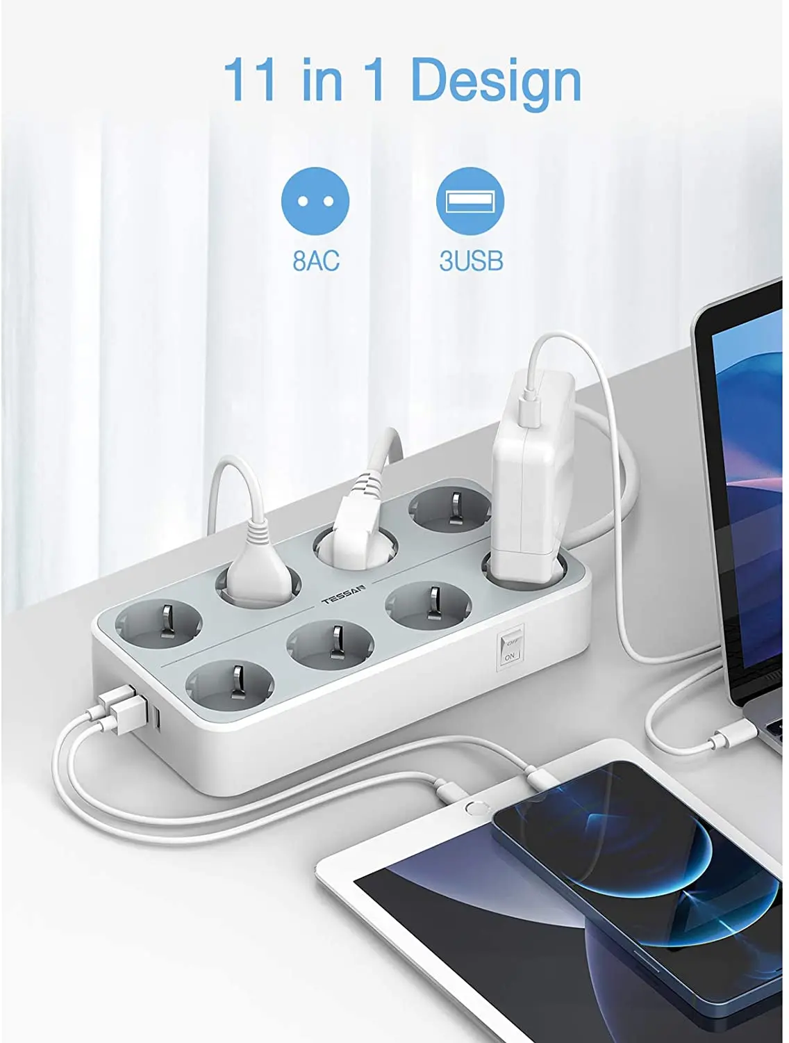 Удлинитель USB адаптер монтируемая лента питания с 8 выходами переменного тока и 3 usb-портами на выключенном выключателе штепсельная вилка европейского стандарта 2 м/6,5фт розетка для офиса и дома