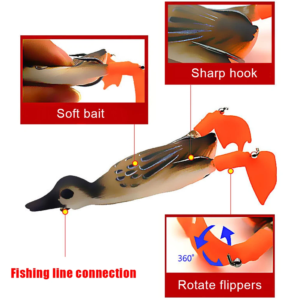 * 2. Реалистичный дизайн: Реалистичные 3D глаза и почти настоящие плавательные действия, безупречно повторяет фактическую утку, помогает рыболовам привлечь большую рыбу.
