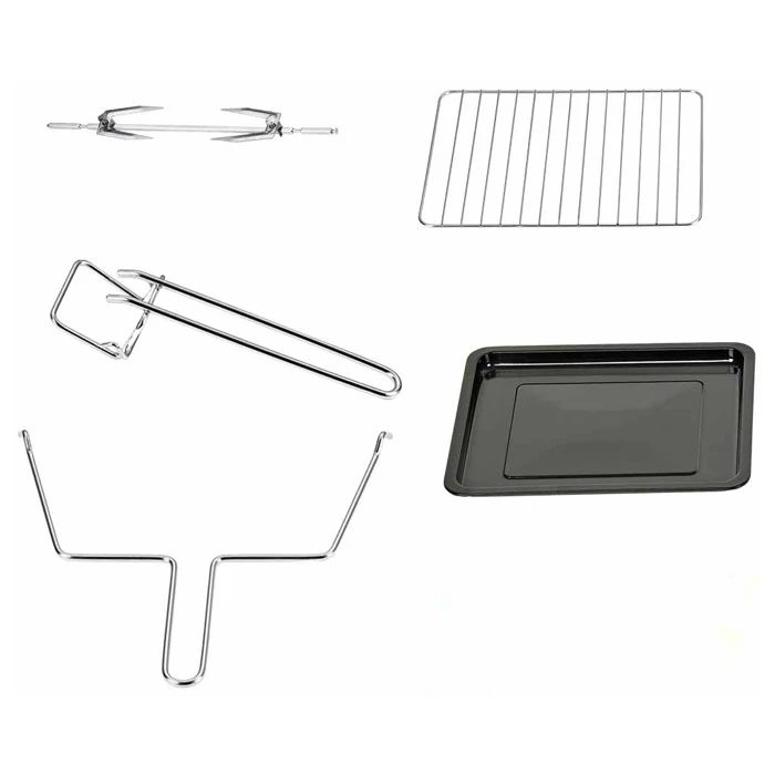 Благодаря довольно компактным размерам и при этом внушительному объему в 30 литров эта печь позволяет приготовить как отдельные блюда, так и птицу целиком (для любителей курочки гриль в комплекте присутствует вертел)