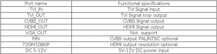 3)TVI к HDMI-максимальное разрешение выхода HDMI 1080p @ 50/60, автоматическое преобразование частоты