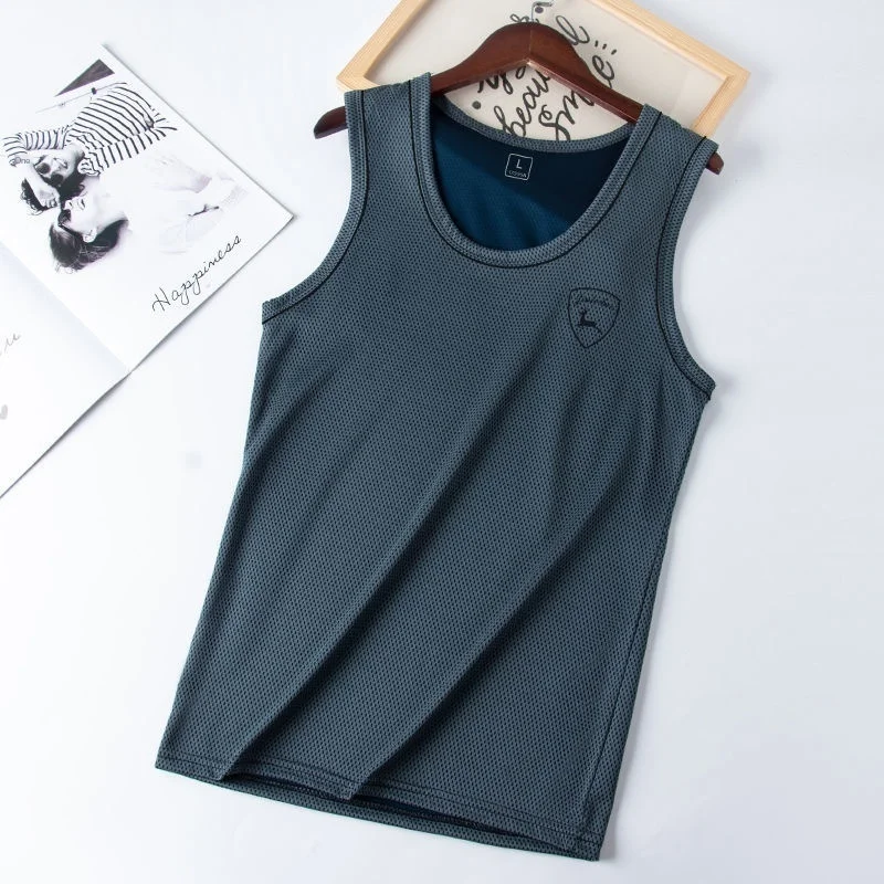 Мужской жилет из дышащей сетки, Быстросохнущий жилет без рукавов с круглым вырезом из ледяного шелка, жилет с широким плечом для фитнеса