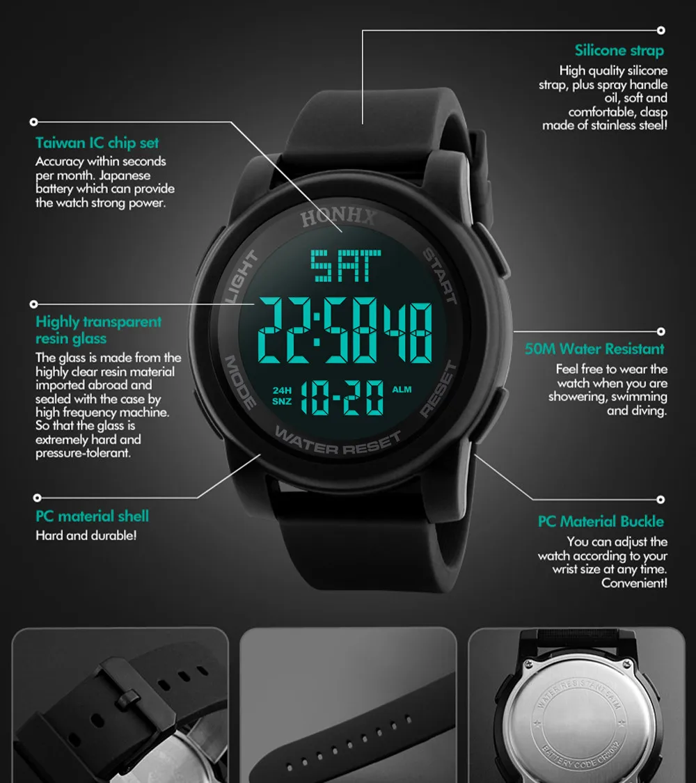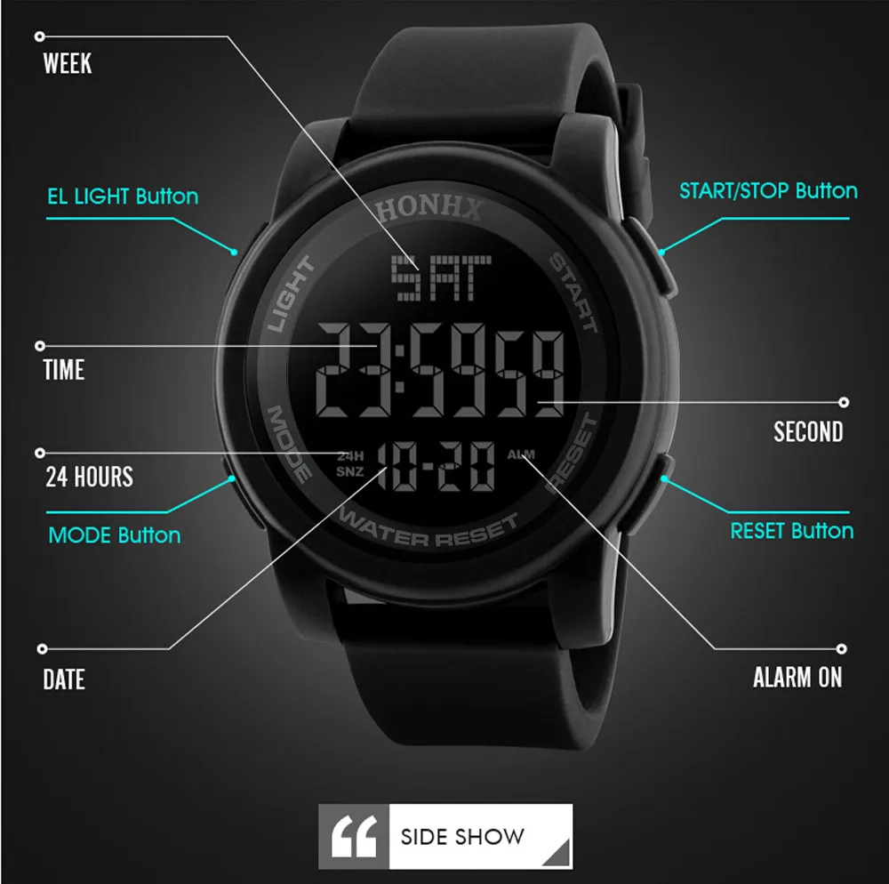Модные мужские светодиодные водонепроницаемые цифровые кварцевые Военные Роскошные спортивные часы для свиданий