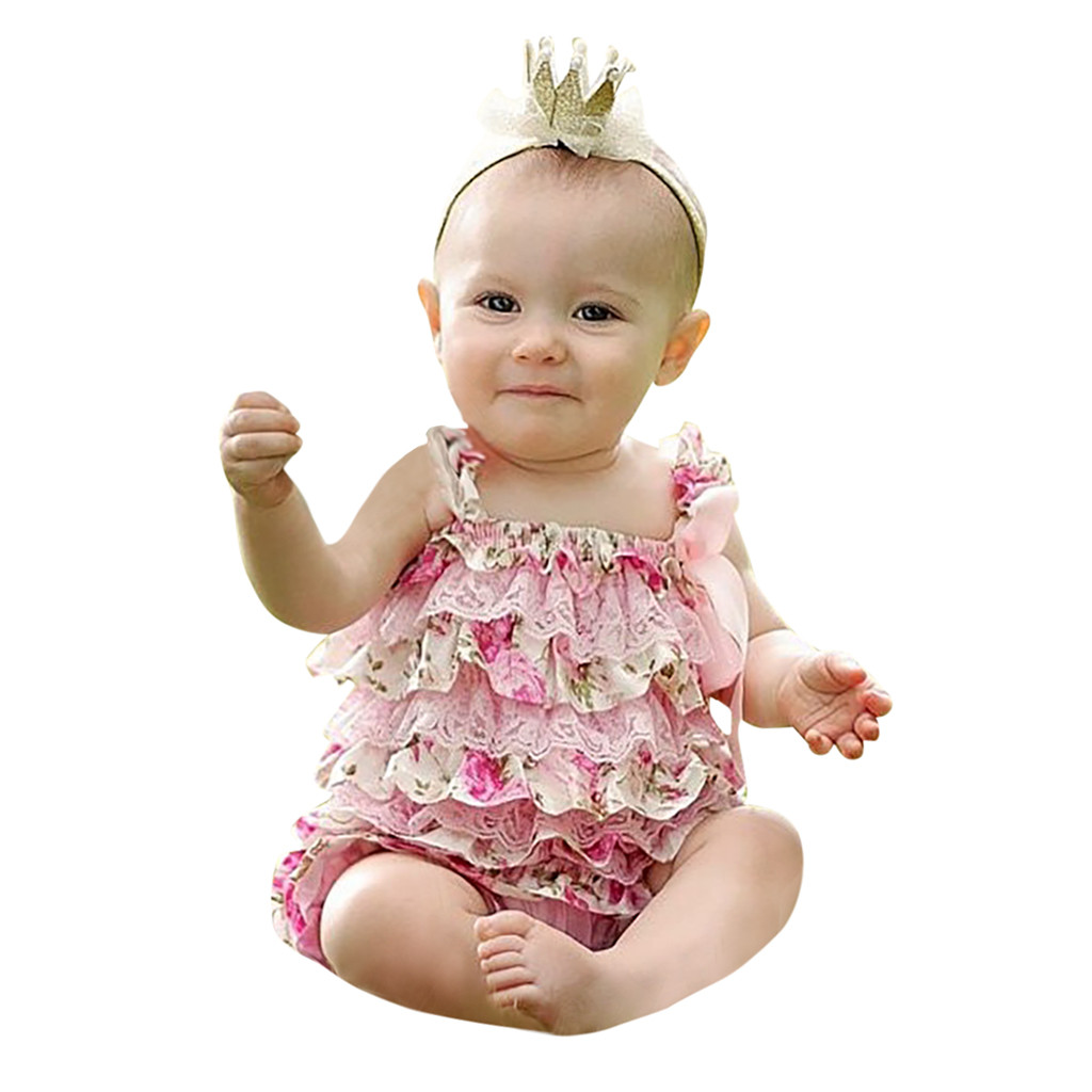Комбинезон для новорожденных девочек; Кружевной комбинезон с оборками и цветочным рисунком