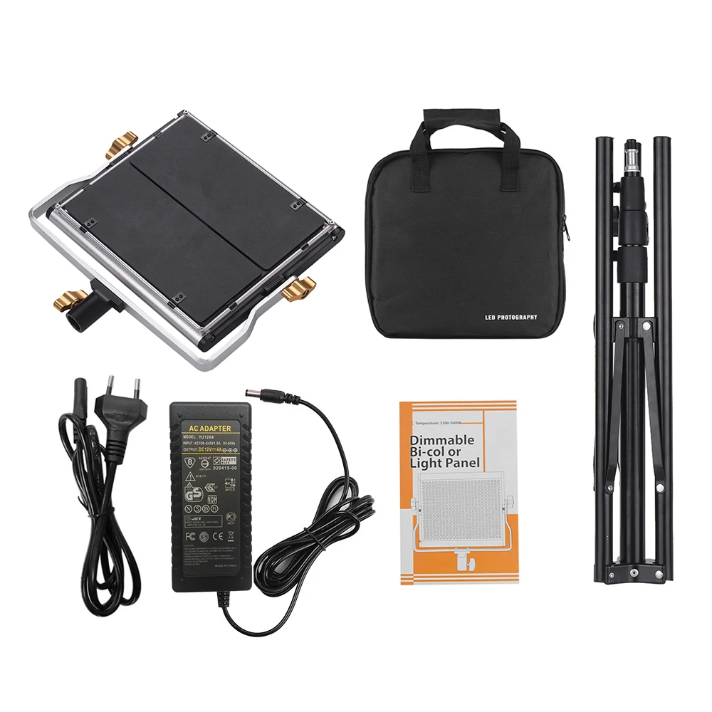 【Двухцветная световая панель с регулируемой яркостью 】:С 330 белыми и 330 желтыми светодиодными лампами длительного действия, с 2 контрольными ручками для регулировки яркости (0%-100%), 3200-5600K Цветовая температура, световая панель может удовлетворить ваши различные потребности световых эффектов, более реалистично, чтобы показать цвет съемки объектов.