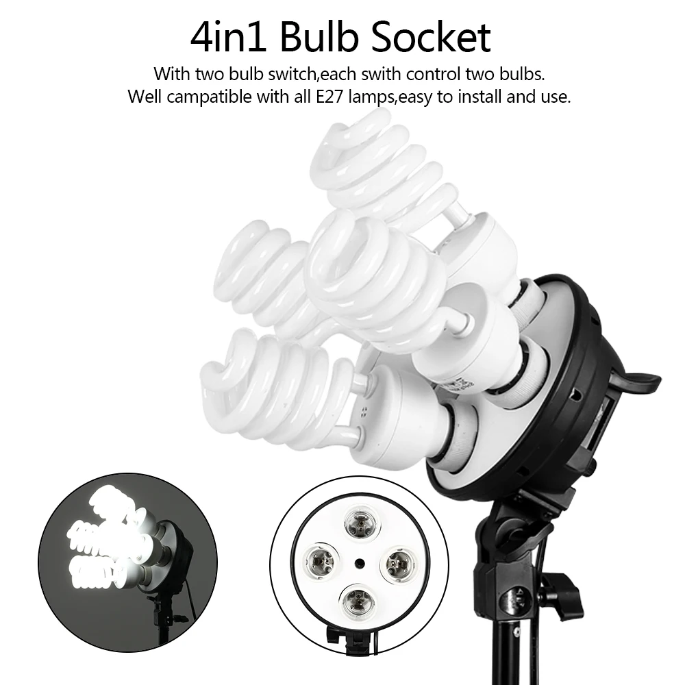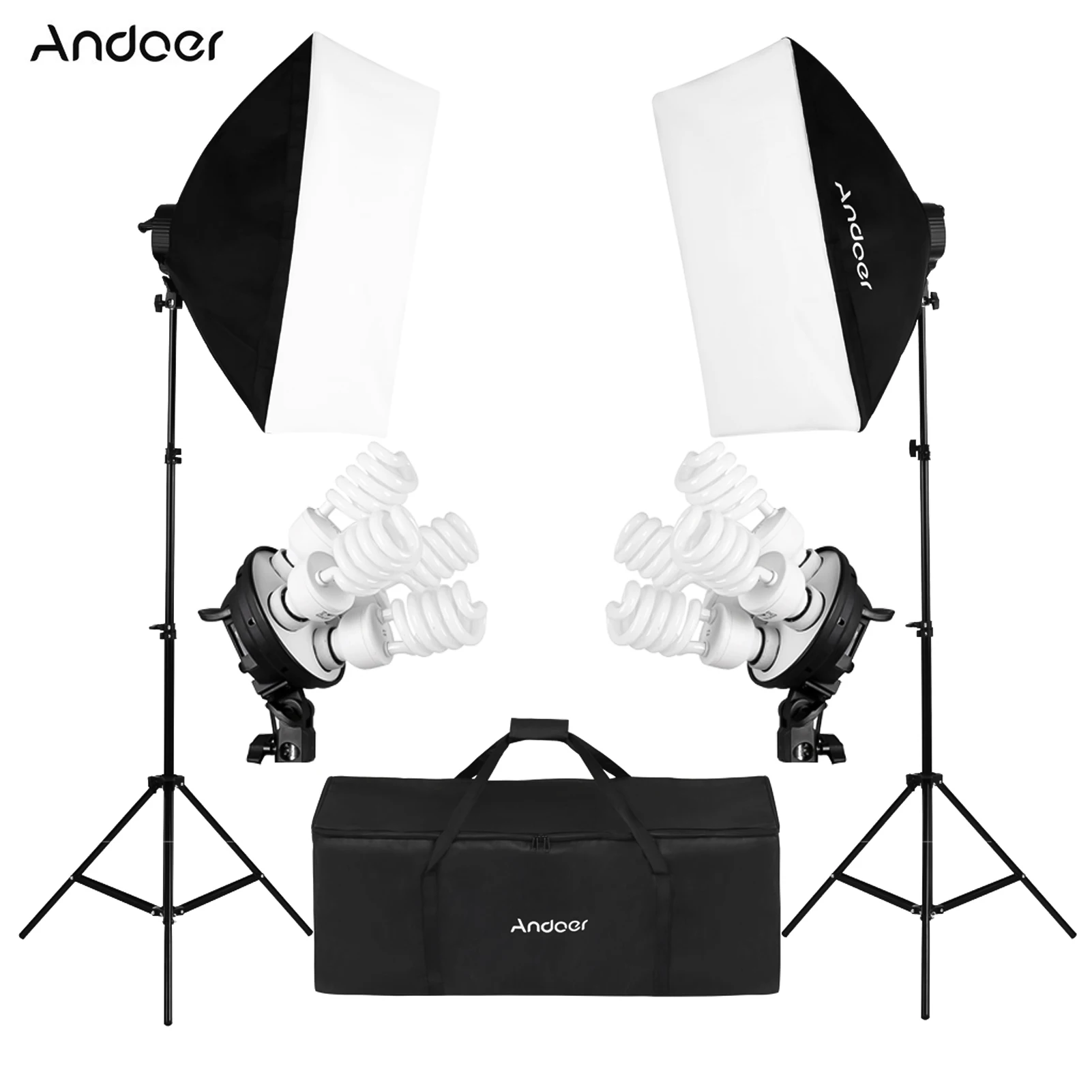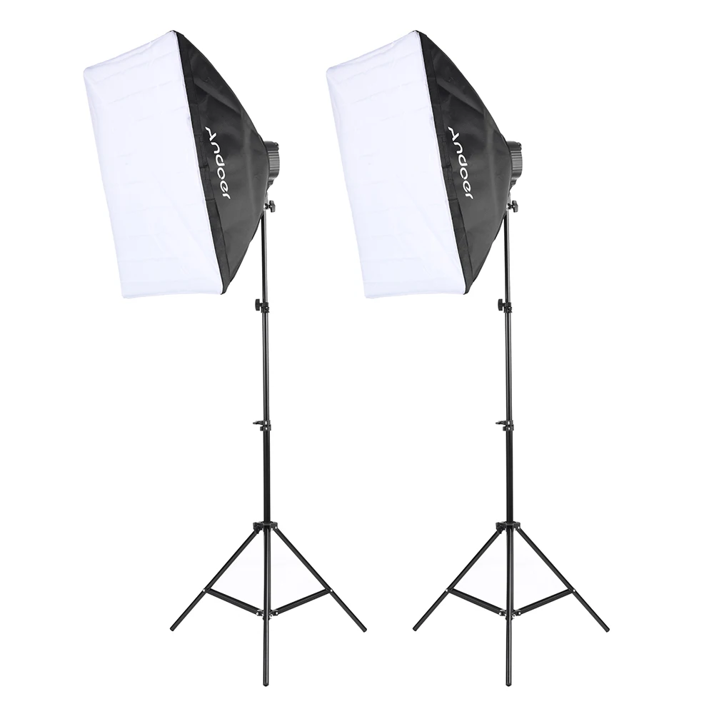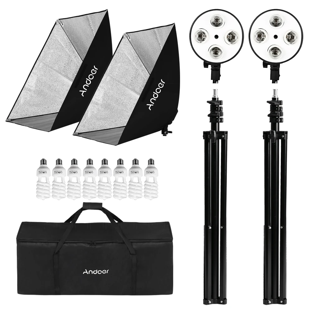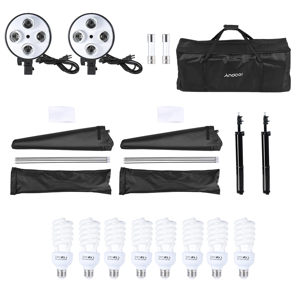 Комплект освещения Andoer для студийной фотосъемки с 2 * софтбоксом 2*4в1 лампочным гнездом 8*45 Вт лампочкой 2 * осветительная стойка 1 * сумка