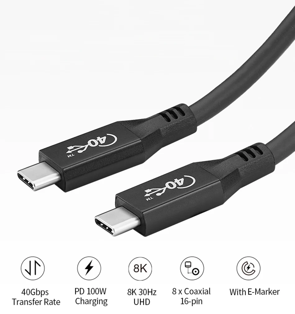 TQUQ USB4 кабель [2. Зарядное устройство USB 3ft/0,8 m], кабель-Переходник USB C кабель Поддержка 40 Гбит/с, 8K/4K видео, 100W PD быстрой зарядки совместим с TB3 кабель