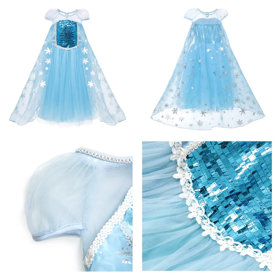 Название: горячая Снежная королева платье «Принцесса Эльза» для девочек на Хэллоуин вечерние платья диснеевских принцесс костюм для детей с изображением принцессы Эльзы детское платье Vestidos детская одежда От 2 до 12 лет