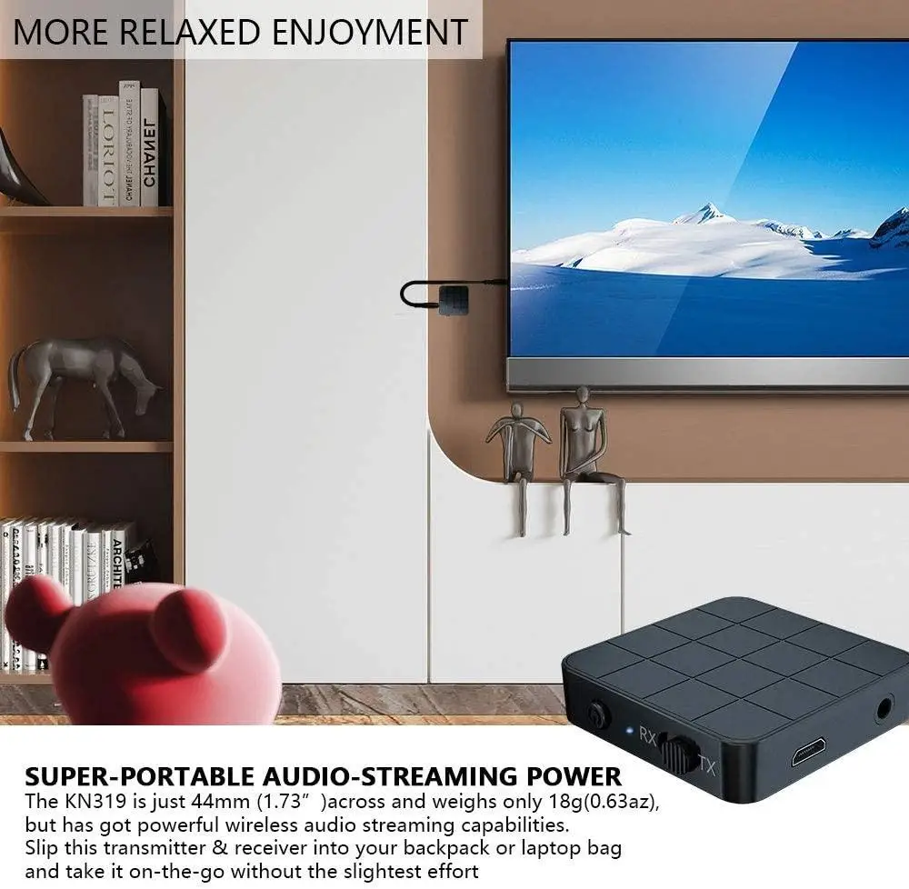 Режим передатчика: Беспроводная передача аудио с телевизора, не работающего по Bluetooth, домашней стереосистемы или CD-плеера на наушники или колонки Bluetooth