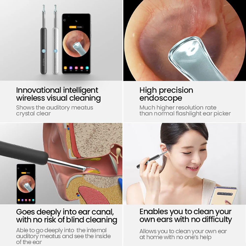 2. Встроенная точка доступа Wi-Fi и объектив камеры диаметром 3 мм могут обеспечить четкое изображение и весь процесс видео в реальном времени для выкапывания ушного воска с богатыми деталями для практического наблюдения и проверки слухового канала.