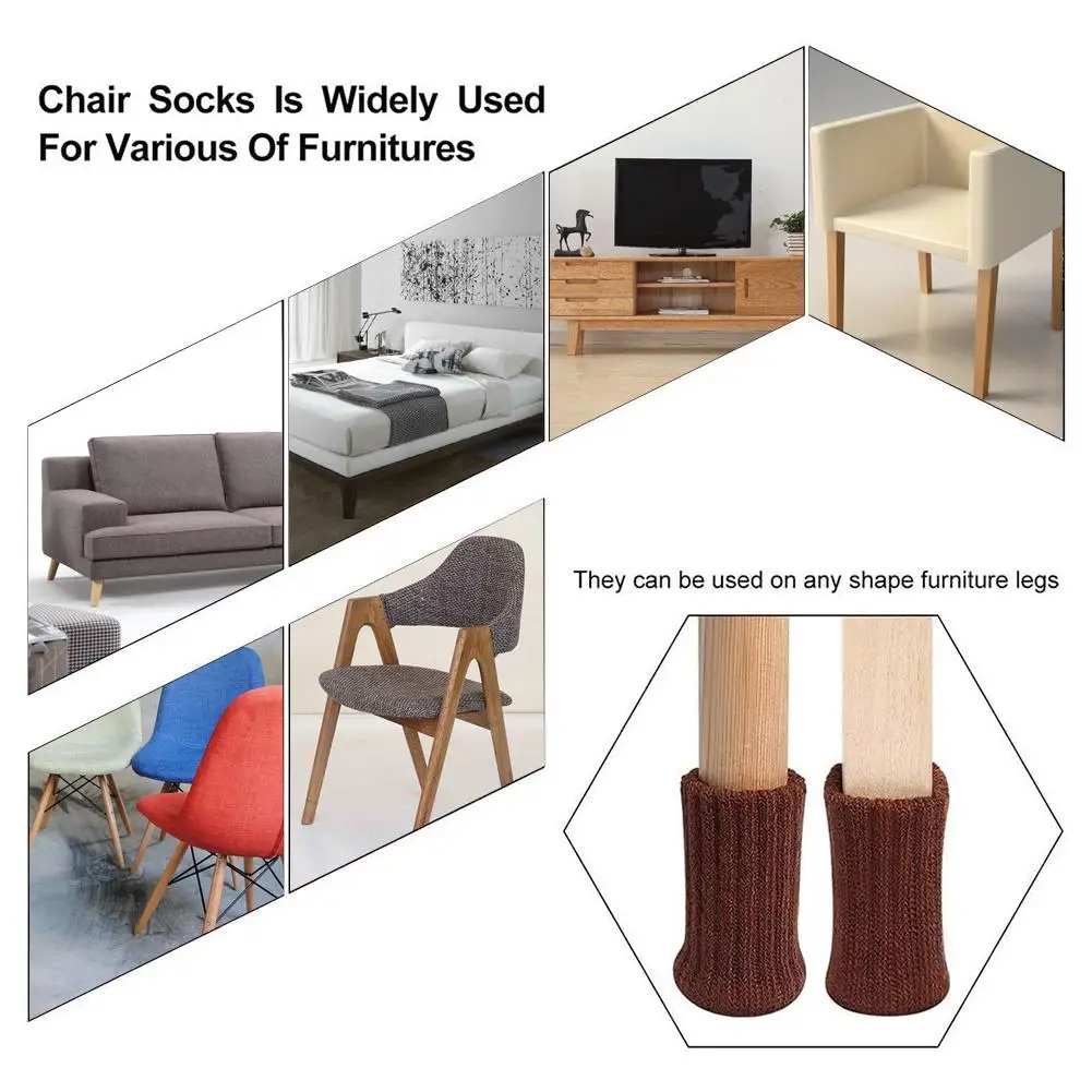 24 PCS Knitted Chair Leg Socks Furniture Leg Socks Non-slip Floor Protectors Chair Feet Covers Moving Noise Reduction