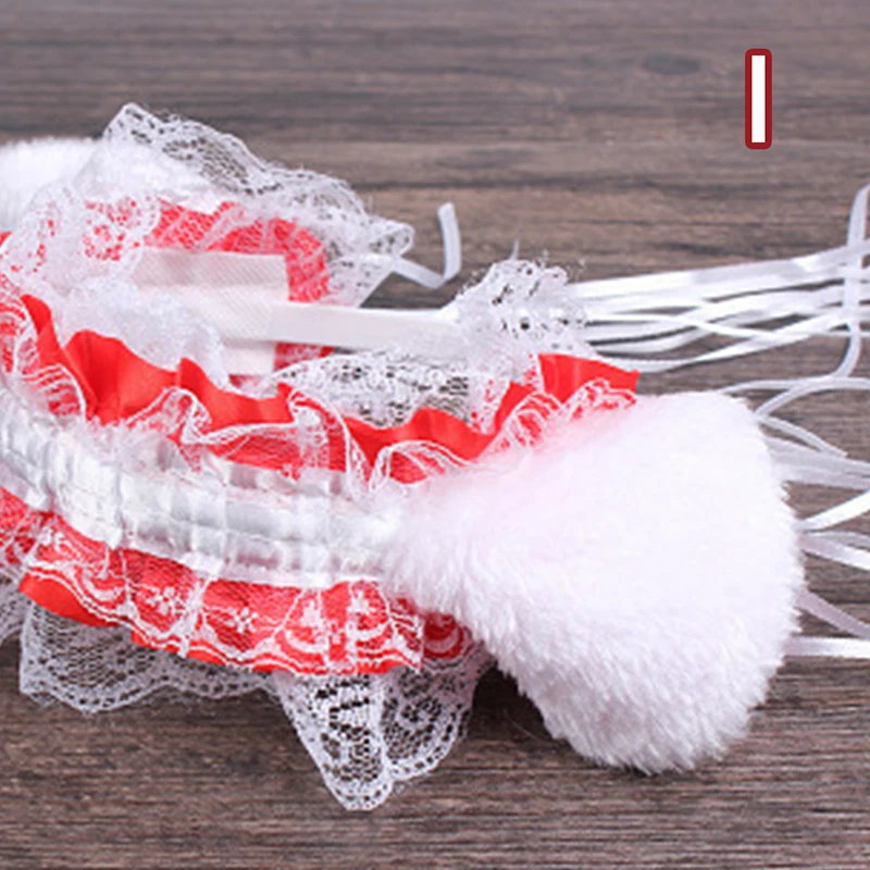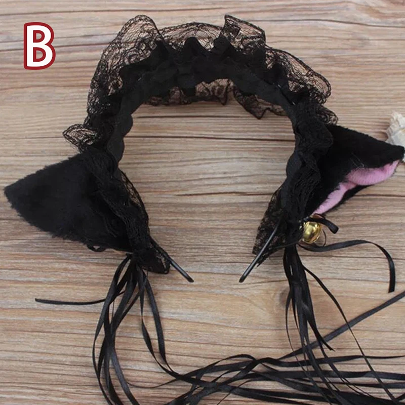 Женская Кружевная повязка на голову с оборками для горничной, плюшевый колокольчик с лентой и кошачьими ушками для костюмированной вечеринки, материал-кружево, плюш