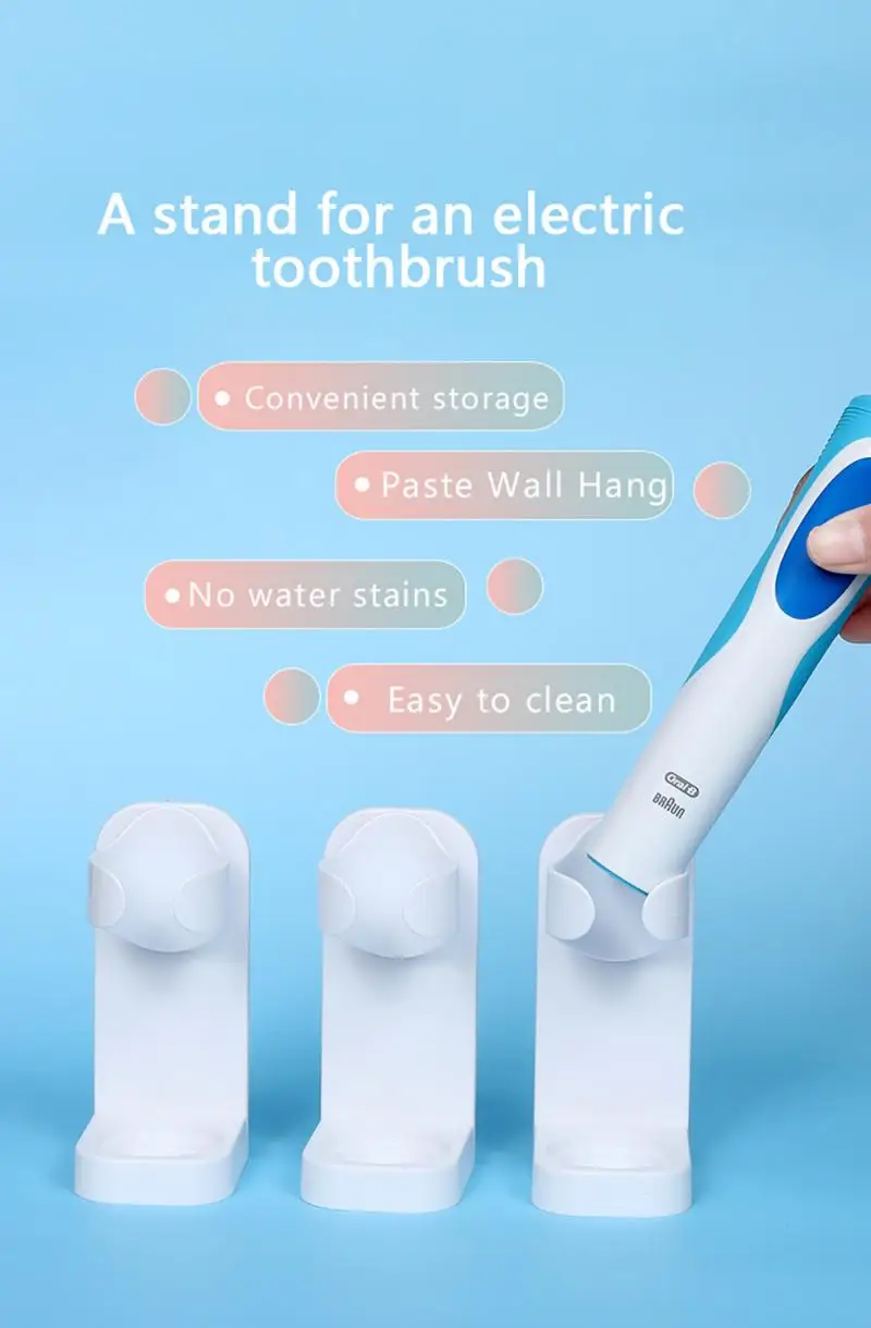 Кронштейн, предназначенный для электрических зубных щеток, удобен в хранении, крепится к стене, не оставляет пятен воды, легко моется