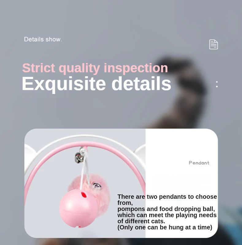 3.Две подвески Веселая игра с кошками:Есть два разных аксессуара, помпоны и мячик для капель пищи, которые вызывают интерес кошки. (Только один может быть подвешен одновременно)