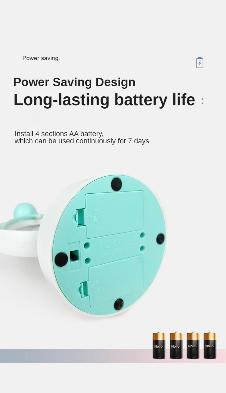 2.Энергосберегающая конструкция длительный срок службы батареи:Установите 4 секции AA батареи, которые могут использоваться непрерывно в течение 7 дней.