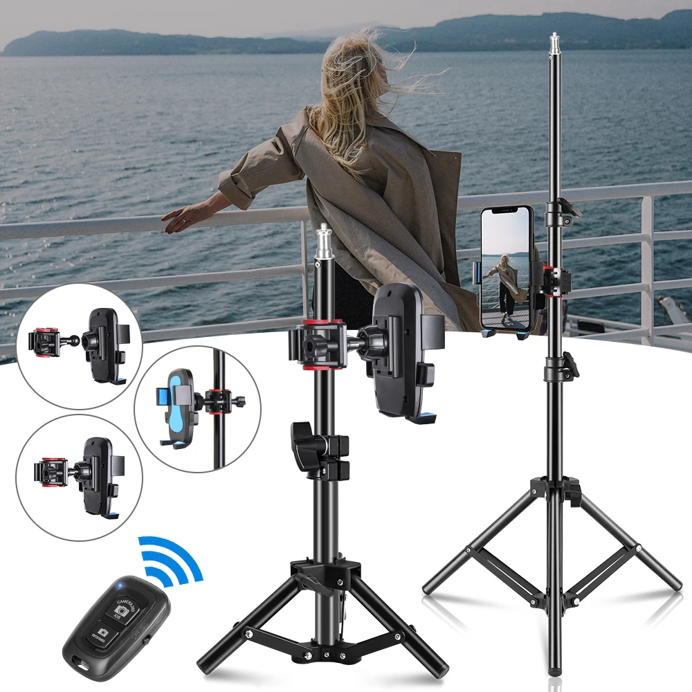 Регулируемый студийный светильник 36 68 100 150 200 см, Портативная подставка для штатива с зажимом для телефона, Bluetooth, кольцевой светильник для фотостудии