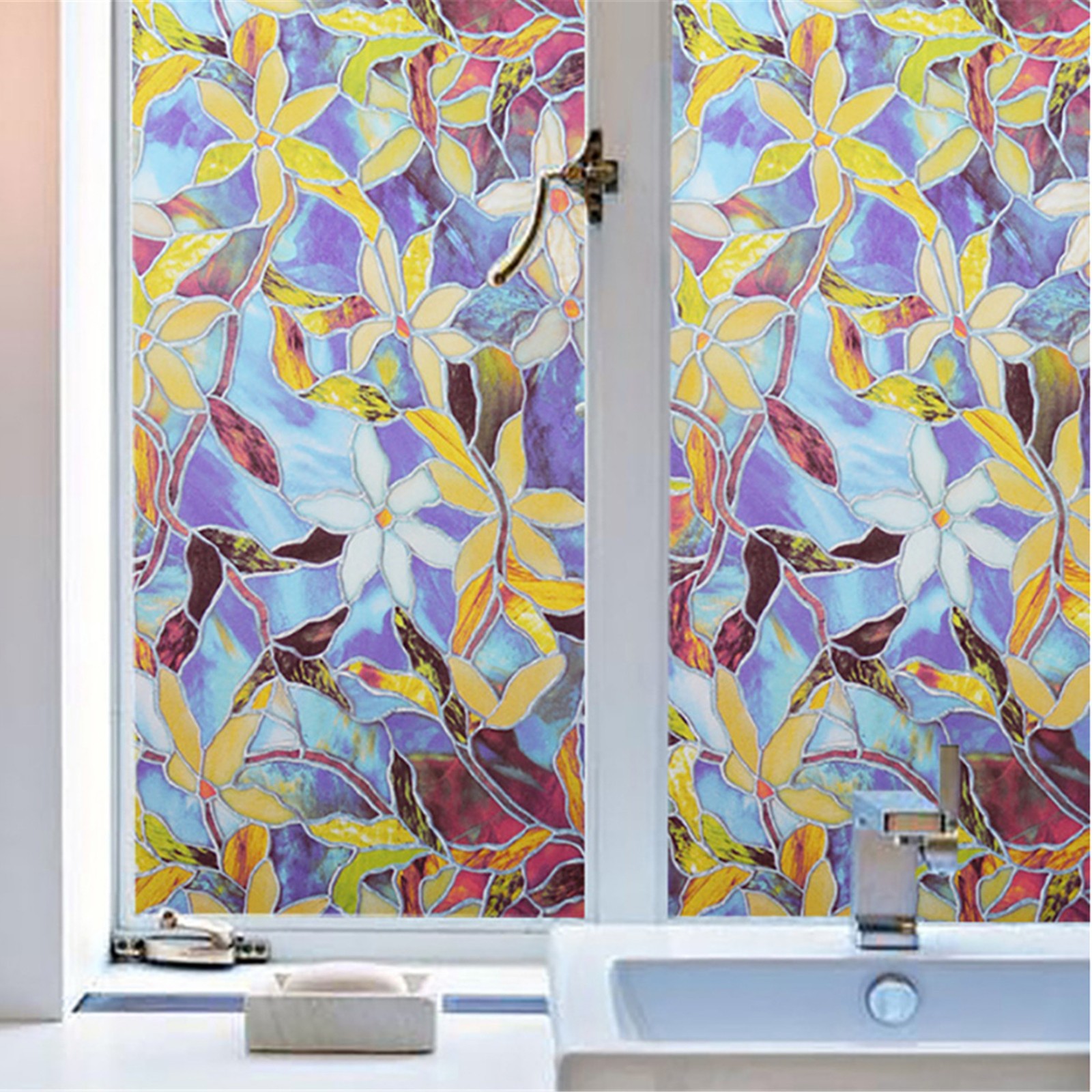 Экологически чистый материал Хороший эффект защиты от солнца С эффектом преломления 3D Эта декоративная пленка создает красоту и уединение с видом красивого витражного стекла. Легко наносится на интерьер стекла без клея. Он обеспечивает защиту от ультрафиолета. Спецификация: Цвет: разноцветный Спецификация: 45x100 см/45x200 см Материал: ПВХ Включает: 1 х оконная пленка