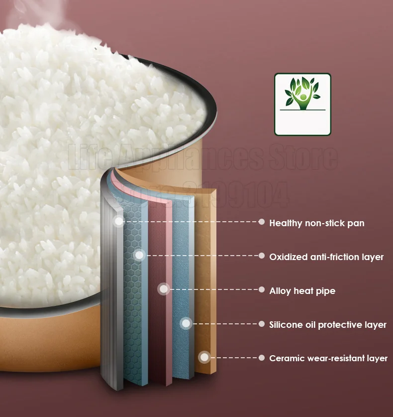 5-ти слойной сбора энергии и прочный внутренний контейнер, выделения тепла и проводящая тепло система, более стабильны, и рис вкуснее